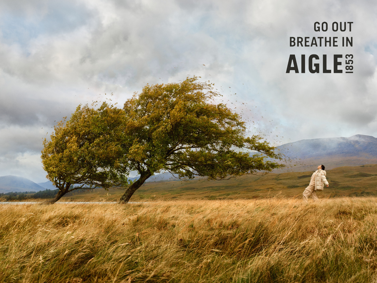 Ein Atemzug, der so intensiv, so erfrischend, so tief ist, dass er in der ganzen Landschaft auf poetische Weise spürbar wird. Mit dieser Kampagne unterstreicht Aigle seinen Markenzweck: jedem zu ermöglichen, sein Leben in vollen Zügen zu leben und nichts als seine Fußspuren zu hinterlassen. Aigle war die erste große Marke, die im Jahr 2020 zu einem zweckorientierten Unternehmen wurde, und arbeitet daran, nachhaltigere Mode anzubieten, wobei 68 % der Herbst-Winter-Kollektion 2022 aus ökologisch gestalteten Produkten bestehen.