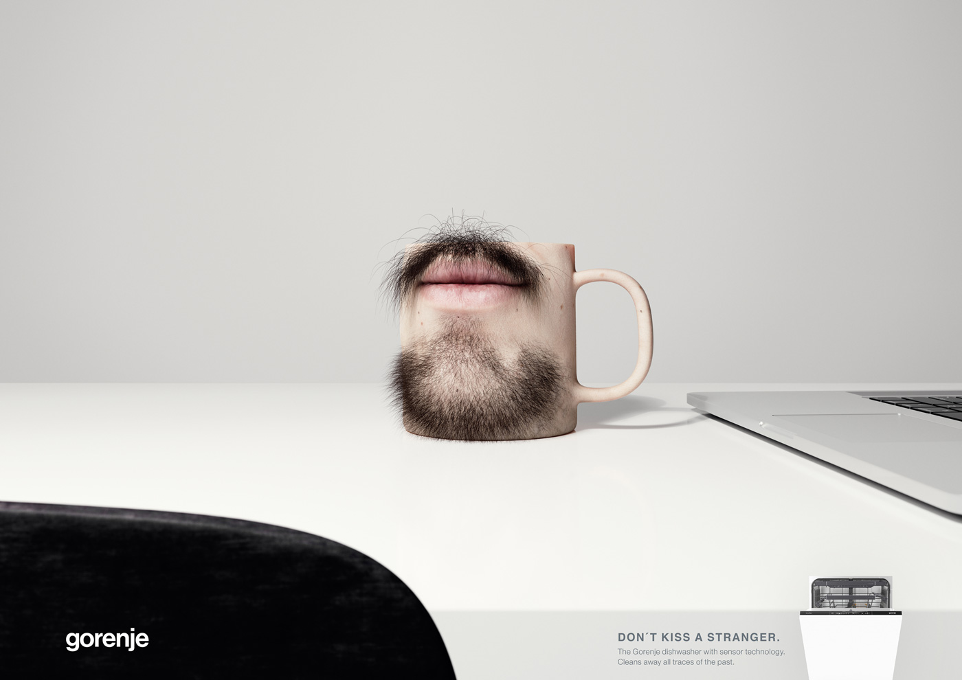 Sauber ist nicht immer gleich sauber. Denn wer sein Geschirr nicht ordentlich spült, kommt schnell mit Resten und Rückständen des Vor-Trinkers in Berührung. Das zeigt BBDO Düsseldorf in einer Printkampagne für den Haushaltsgerätehersteller Gorenje. Die Agentur verwandelt dafür Trinkbecher und Kaffeetassen in Gesichter, mit denen man freiwillig lieber nicht in einen engeren Kontakt treten möchte.