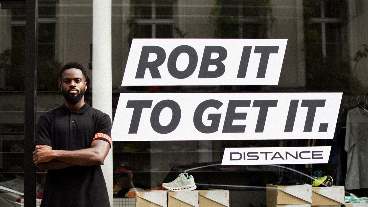 Mit der Aktion Rob It To Get It lud Distance seine Kunden zu einer ganz besonderen Herausforderung ein: Wenn sie es schaffen, einen Artikel aus ihrem Pariser Laufladen zu stehlen und sich dabei nicht von dem Elitesprinter Mickael Zeze erwischen zu lassen, der einen Tag lang an der Tür steht, durften sie ihn behalten!