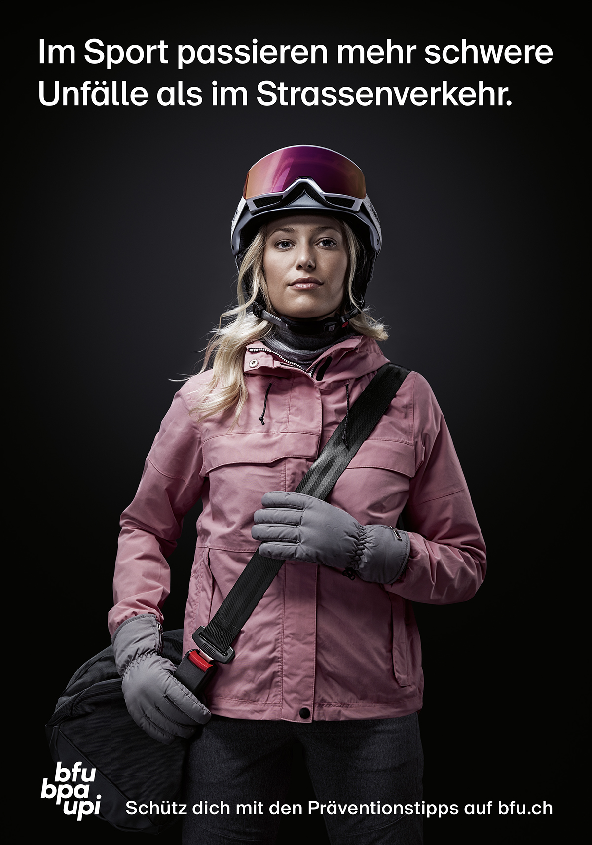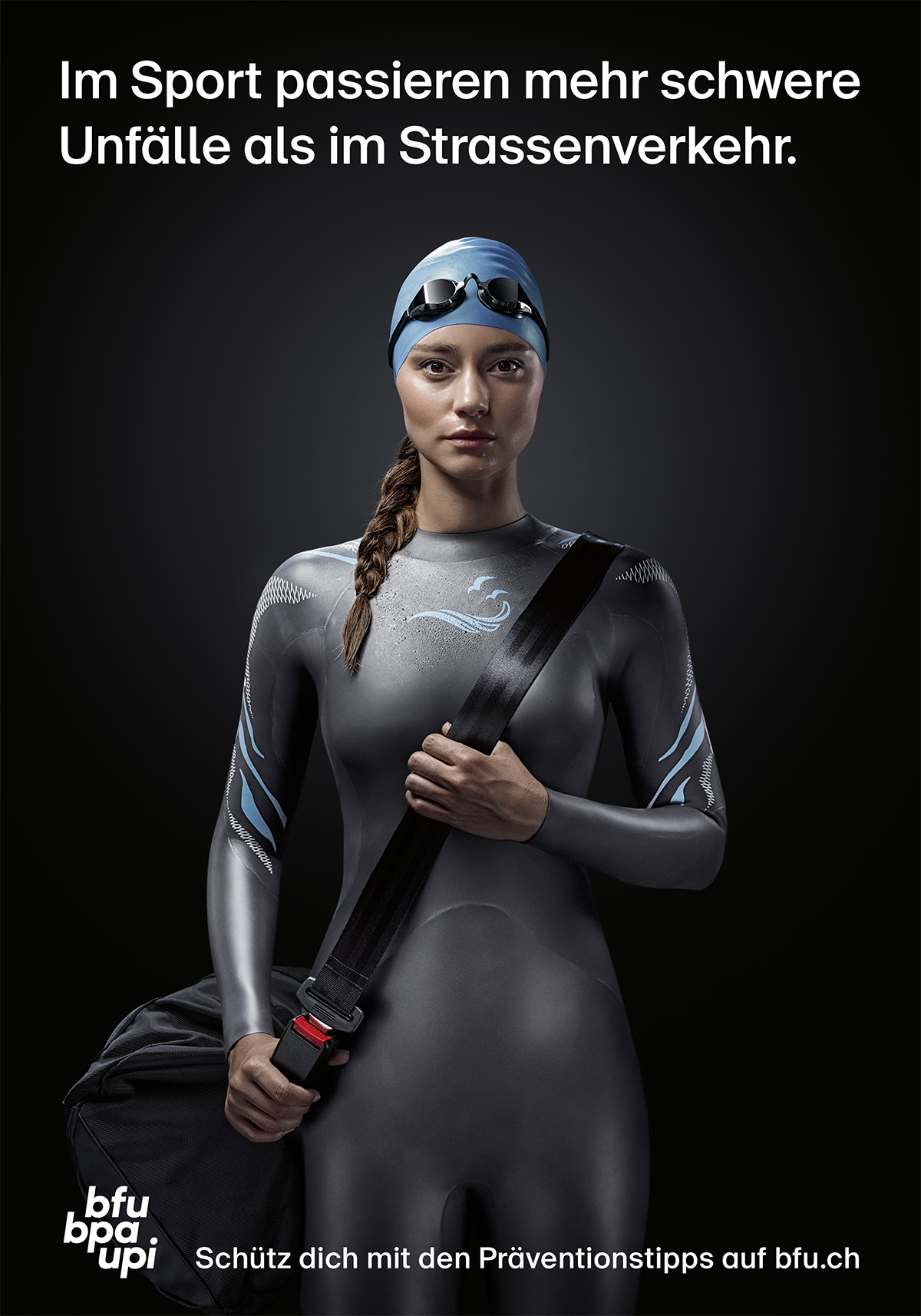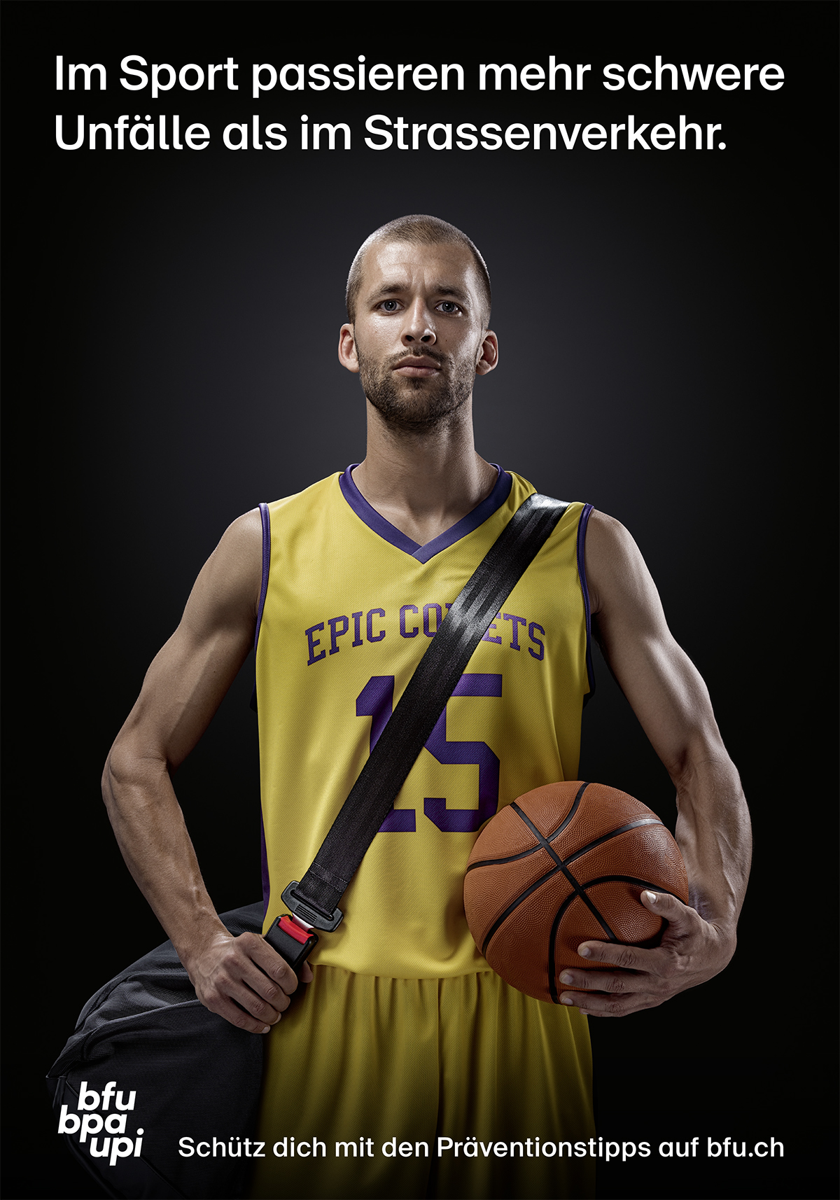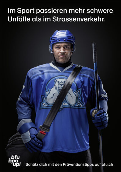 Das auf drei Jahre angelegte Konzept wird ab 28. September mit einem schweizweiten Plakataushang lanciert. Dafür wurden sechs Mannschafts- und Einzelsportarten mit hohem Unfallpotential definiert und fotografisch prägnant inszeniert.