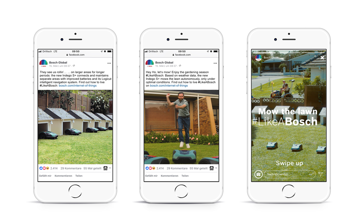 Nach dem gelungenen Auftakt legt die verantwortliche Kreativagentur Jung von Matt/NEXT ALSTER jetzt nach, zeigt anhand drei neuer Spots wie Produktkommunikation #LikeABosch aussieht und führt damit die langfristig angelegte IoTKommunkationsstrategie der Stuttgarter fort. Bosch hat eben nicht „nur“ Komponenten und Visionen, sondern bereits heute viele Endverbraucher-Produkte, die den Alltag mithilfe von IoT komfortabler, sicherer und umweltverträglicher gestalten – vom mitdenkenden Heiz-Thermostat bis zum selbstmähenden Rasenmäher.