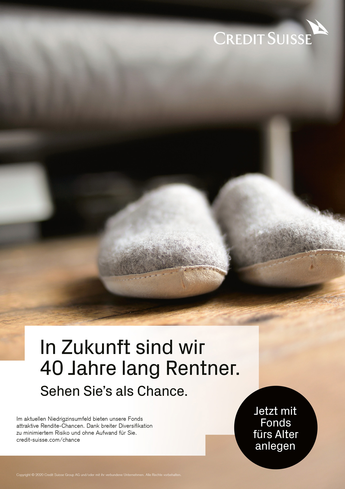 Dass sich eine Bank mit gesellschaftlichen Fragen und den Sorgen der Schweizerinnen und Schweizer auseinandersetzt, mag vielen Menschen erstaunlich vorkommen. Wenn es sich bei der Bank allerdings um die Credit Suisse handelt, wird das glaubwürdig – setzt sie sich doch mit dem Sorgenbarometer schon seit Jahrzehnten mit den Befindlichkeiten der Schweizer Bürger auseinander. So ist es nur folgerichtig, dass die Credit Suisse in ihrer neusten Kampagne ihre Zielgruppen mit zukunftsrelevanten Fragestellungen aus den Bereichen Vorsorge und Vermögen anspricht.