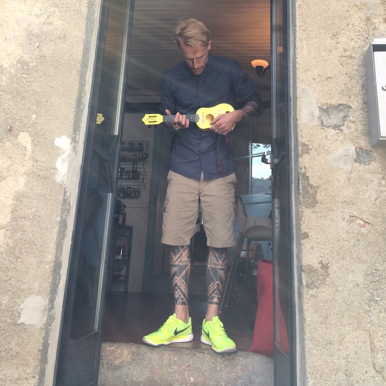 Tätowiert sind beide seiner Arme, Beine, Hände, der eine Fuss und die andere Rippenpartie. Vom Stil her ist es sogenanntes «black work», die Einflüsse wehen von Mikronesien, Polynesien, Tahiti & Co. hierher. Viel Schwarz, grafisch ausgeprägt und eher mit Ecken und Kanten, denn gespickt mit schwungvollen Tintenflecken.