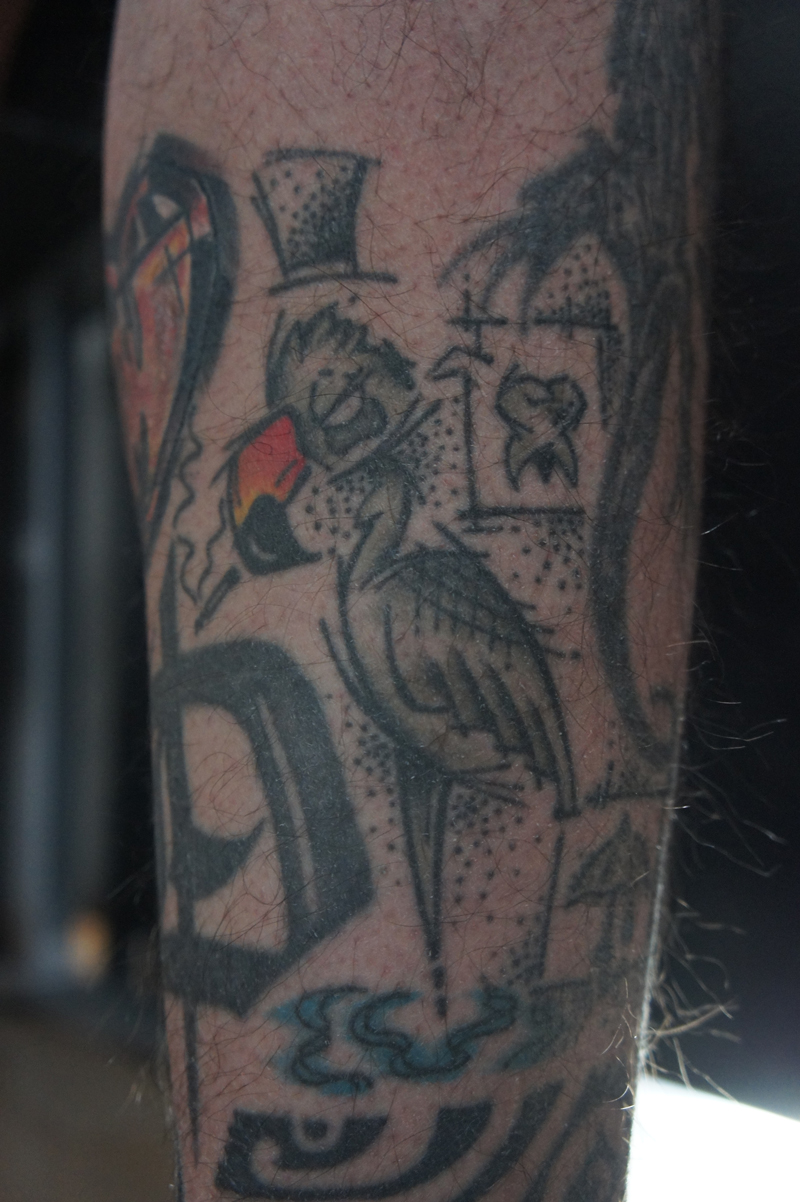 Den Flamingo hat mir mein Studiopartner und «Busenfreund» Micky gehackt. Es ist einer aus seinen «Wanna Dos» der an unsere erste Tattoo-Convetion erinnert! Das war vor zwei Jahren. Wir waren ganz frisch im Business und durften das erste Mal an einer Convention arbeiten. Wir waren extrem nervös und hatten regelrecht schiss davor. Zum Glück hat aber alles super funktioniert. Wir haben tolle Menschen kennen gelernt und sind seitdem schon das dritte Mal an dieser Convention mit dabei.