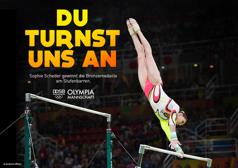 Dass die Zusammenarbeit funktioniert, wird schon bei einem der ersten Postings nach Wettkampfstart klar – wenn auch unter wenig erfreulichen Umständen: Turner Andreas Toba wird für sein Durchhalten trotz Knie-Verletzung zum ersten „Hero de Janeiro“ erklärt. Das Motiv erreicht über 3 Millionen Menschen auf den eigenen Kanälen und wurde in den Medien vielfach zitiert. Weitere Motive wie „Wir Hambüchen! Wen habt Ihr?“, „Der Kanu siegen“, „Du turnst uns an“ oder „Ihre Welt ist eine Scheibe“ begeistern Sportdeutschland im Netz.