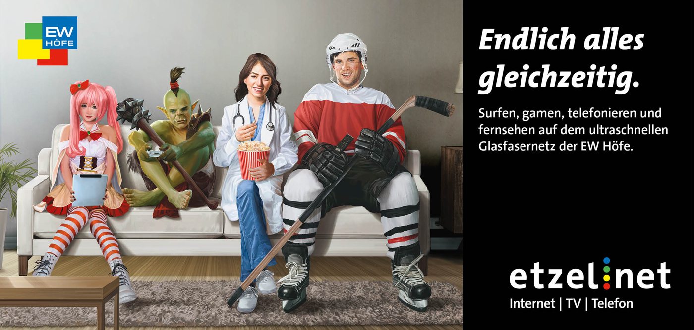 Nicht so mit Etzelnet von EW Höfe. Denn diese ziehen das schnellste Netz der Region gleich bis ins jeweilige Zuhause oder Büro. So kann das Töchterchen die koreanische Soap auf dem iPad in höchster Bildqualität ebenso ruckelfrei geniessen, wie ihr Bruder das neuste Game im Online-Modus. Und während der Heimcomputer im Hintergrund sein Backup in die iCloud lädt, gönnt sich Mama die neueste Yoga-App samt Content, und Papa fiebert ohne Zeitverzögerung bei der Champions League mit.