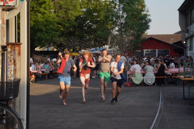 „Ich mag sehr, dass unser Sommerfest so einfach und unkompliziert ist. Ein paar Bänke, zu trinken, zu essen, und ganz viel Zeit, um sich auszutauschen mit all den Menschen, die unsere Arbeit so vielfältig und spannend machen“, lässt sich Felix Courvoisier von Seed entlocken. Allerdings ist das ein bisschen tief gestapelt. In Wahrheit mussten 45 Festbänke, 10 Stehtische, 200 Meter Tischtücher und 450 Gläser angeschleppt werden. 30 dieser Trinkgefässe sind dann in 15 vollen Abfallsäcken gelandet.