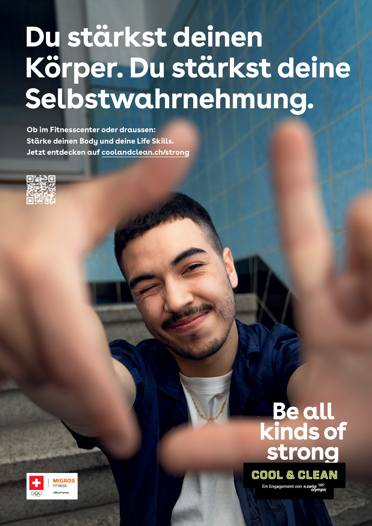 Im Zentrum der motivierenden Kommunikation stehen sechs Videos und sechs Keyvisuals. Ziel ist es dabei, die Lebens- und Gesundheitskompetenzen von Jugendlichen zu fördern. Die Kampagne «Be all kinds of strong» wird im Rahmen des Präventionsprogramms «cool and clean» ausgespielt und voraussichtlich über mehrere Jahre wiederholt. Hinter der Kampagne steht Swiss Olympic als Dachverband des Schweizer Sports und Migros Fitness als Official Partner. Über diese Kooperation wird die Kampagne Out-of-Home bald in allen Migros Fitness-Filialen zu sehen sein.