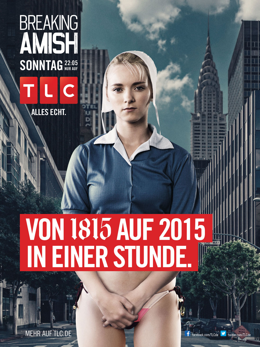 Die Kampagne läuft zunächst in Print, OOH und Online und bewirbt u. a. die TLC-Formate «Cake Boss», «Breaking Amish» und «Enthüllt – Jerry Springer deckt auf». In den Motiven werden die Protagonisten der beliebten Formate in ungewöhnlichen Posen präsentiert, kontrastiert mit frechen Sprüchen. So spaziert Rebecca aus «Breaking Amish» mit züchtigem Amish-Oberteil und knapper Bikinihose durch New York, kommentiert mit «Von 1815 auf 2015 in einer Stunde».