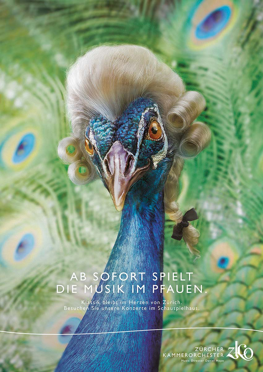 Das ZKO erweitert mit seinen Klängen das Angebot eines der renommiertesten Häuser Zürichs. Passend dazu präsentiert Havas Zürich denn auch das namensgebende Tier des neuen Spielorts im Look der grossen Meister. Das Pfauen-Sujet wird als Plakat, als Anzeige sowie für die Bewerbung auf Social Media und am POS eingesetzt.