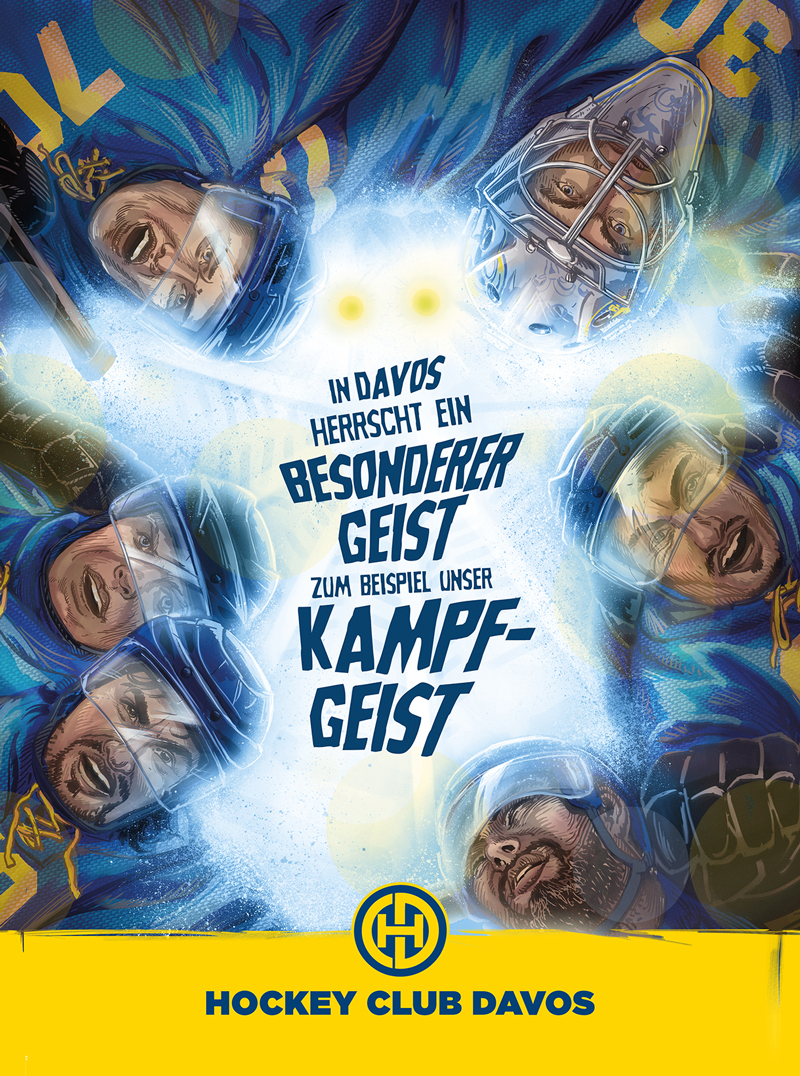 «Fotografisch ist es sehr schwierig, die Besonderheiten des Hockey Clubs mit dem Landwassertal zu verknüpfen. Um dennoch alles plakativ darstellen zu können, haben wir uns entschieden, die Kampagne mit Illustrationen umzusetzen. Und zwar in einem Stil, der perfekt zum HCD passt: energetisch und kraftvoll.» erläutert der verantwortliche Kreativdirektor Andy Lusti die Hintergründe der Kampagne und der ehemalige HCD-Nachwuchsspieler ergänzt: «Unser Ziel war es, eine Kampagne zu entwickeln, welche die Davoser stolz macht und den Gegner das Fürchten lehrt».