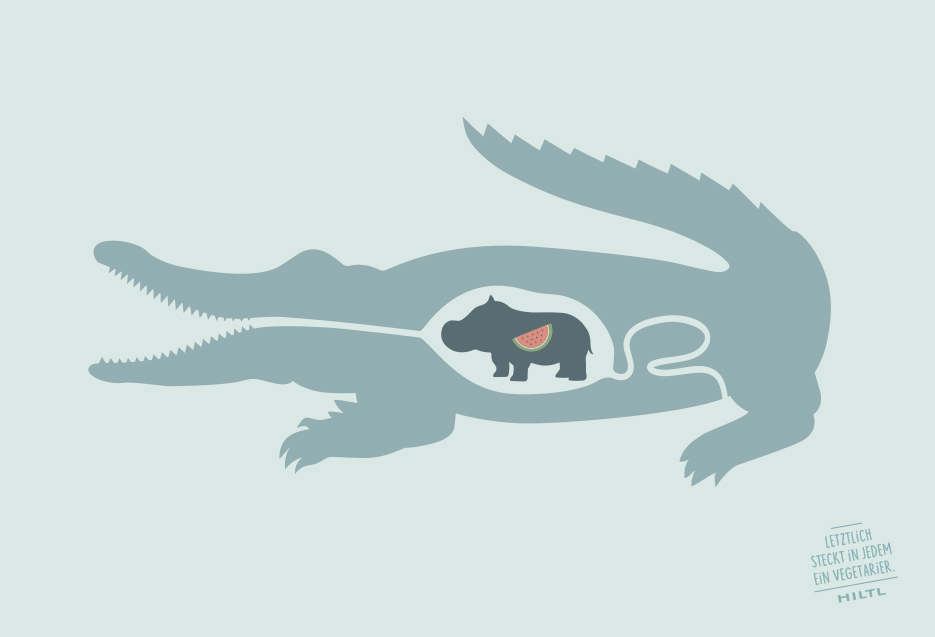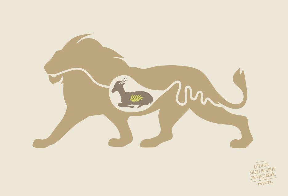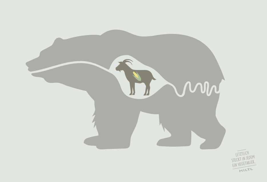 Am Beispiel von heimischen Karnivoren wie Katze, Wolf, Fuchs oder Adler und ihrer natürlichen Beute wurde gezeigt: Letztlich steckt in jedem ein Vegetarier. Die augenzwinkernde Kampagne kam gemäss Rolf Hiltl „beim Publikum sehr gut an und wurde nebenbei mehrfach ausgezeichnet“. (U. a. mit 2 x Silber vom Art Directors Club Switzerland.)