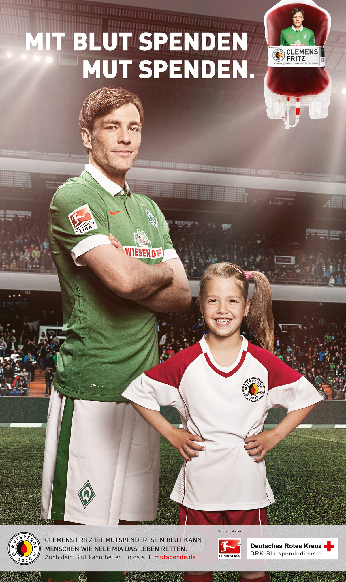 Gemeinsam mit Profi-Fußballern aus ganz Deutschland ruft das DRK auch 2015 zur Blutspende auf. Die erfolgreichste Health Care Kampagne des vergangenen Jahres wird in 2015 mit den Bundesligaprofis Lewis Holtby (Hamburger SV), Clemens Fritz (Werder Bremen), Alexander Meier (Eintracht Frankfurt), Klaas-Jan Huntelaar (Schalke 04) sowie dem ehemalige Hansa Rostock-Profi Stefan Beinlich weitergeführt.