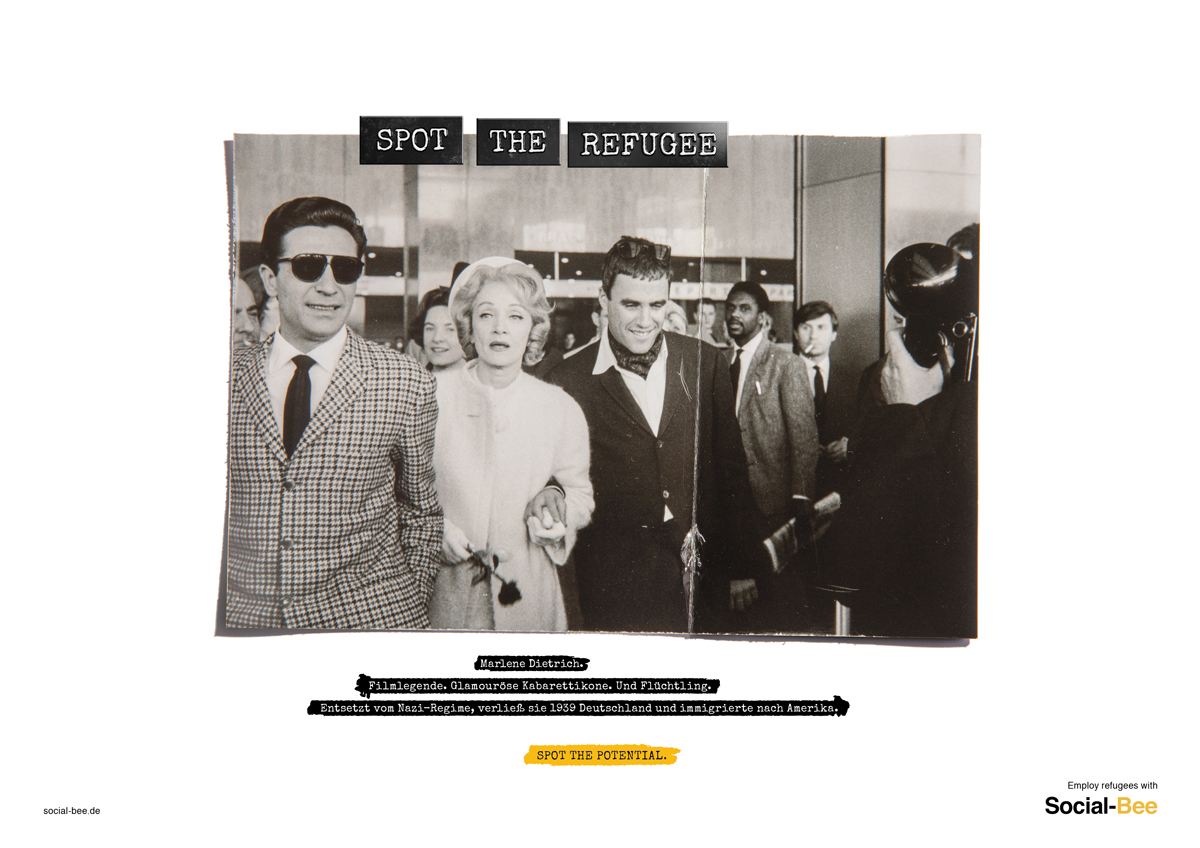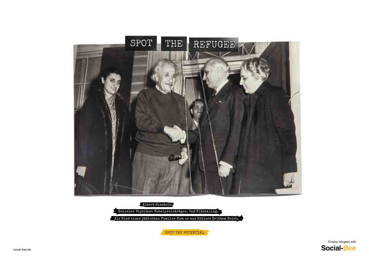 Die Kampagne des Social Start-Ups, dass in München und Stuttgart aktiv ist, will ein generelles Umdenken über die Fähigkeiten von Menschen mit Fluchterfahrung anregen. Um die Vermittlung kümmert sich dann Social-Bee, denn: Fluchterfahrung und Arbeitskompetenz schließen sich keinesfalls aus. Wer heute an Albert Einstein, Freddie Mercury oder Marlene Dietrich denkt, wird weder ihr Können noch ihre Leistung in Frage stellen. Ein genialer Physiker, ein Musik-Genie und eine weltberühmte Kabarettikone – ihre Gemeinsamkeit: Nach Definition der Genfer Konvention sind alle Geflüchtete.