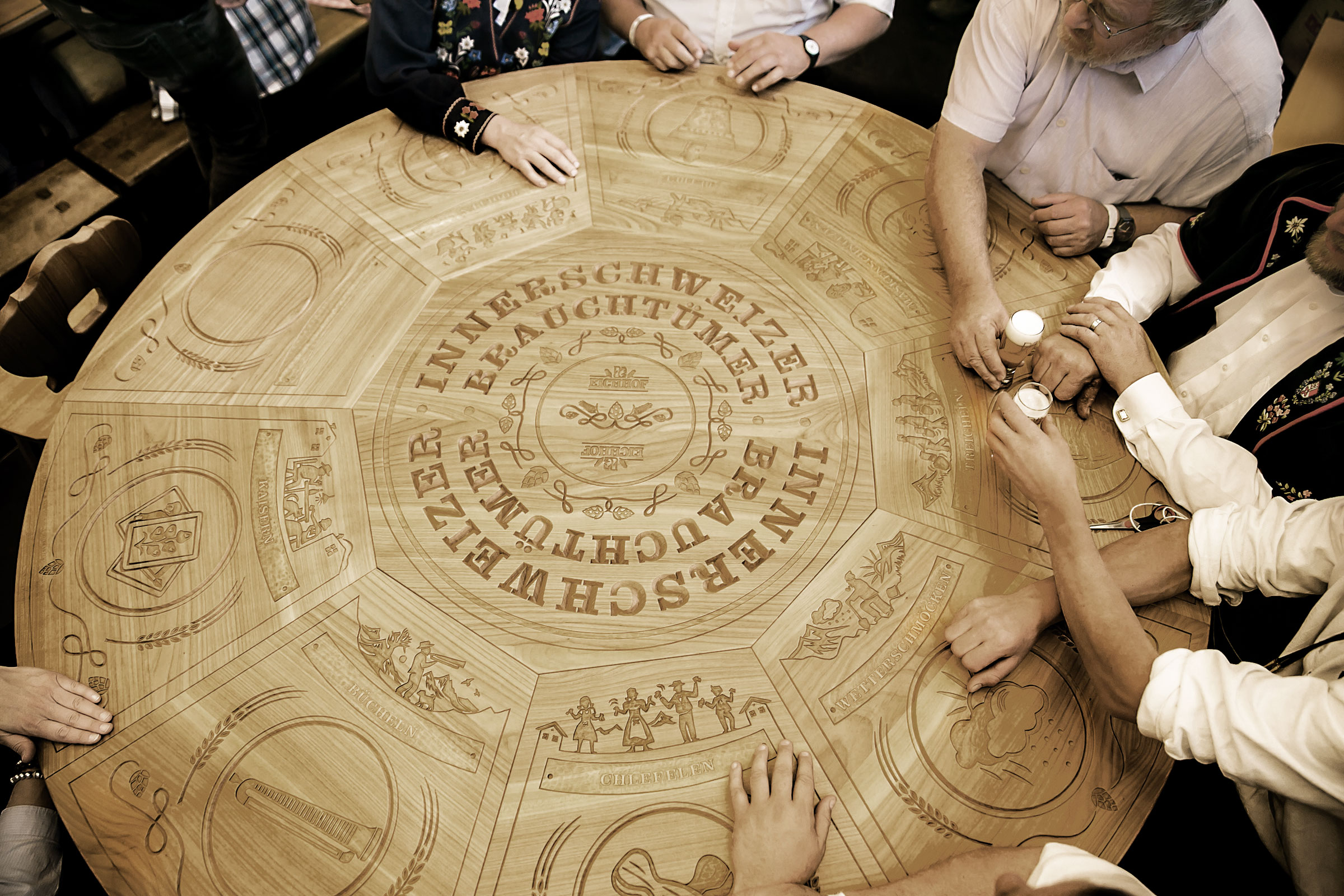 Das Herz der Kampagne ist der Tisch der Innerschweizer Brauchtümer. Einer der letzten Weissküfer der Schweiz stellte in 180 Stunden Handarbeit das Kunstwerk her. Auf dem Tisch sind acht Brauchtümer mit liebevoll gestalteten Bildern und Verzierungen abgebildet. Ein Stück des Tisches ist noch unbearbeitet: Dort erscheint nach der TV-Show das Bild des neuen Innerschweizer Brauchtums.