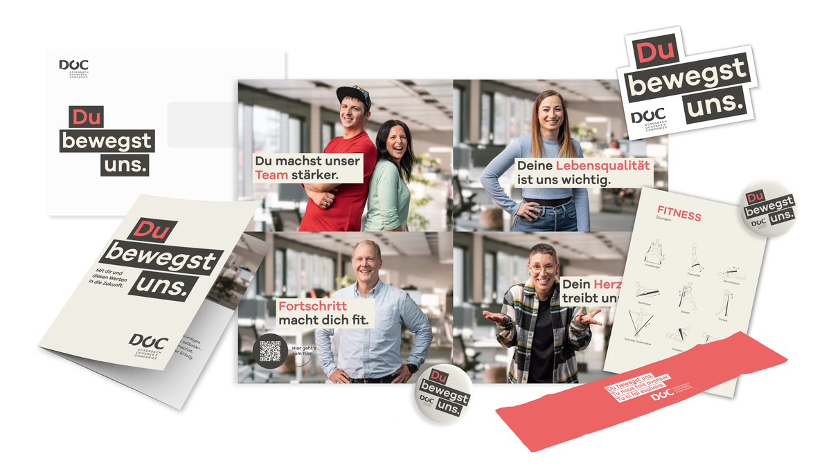 Fortschritt, Herzblut, Teamspirit, Lebenswert: Dies sind die übergeordneten Werte, die getreu dem Motto «du bewegst uns» den inhaltlichen Kern bilden. Für die Filme wurde ein Konzept entwickelt, welches vom Filmproduktionspartner Lauschsicht (Regie und Produktion) in eine raffinierte Storyline weiterentwickelt wurde. Es rückt die Mitarbeitenden ins Zentrum und lässt sie in entspannter Atmosphäre frei von der Leber reden. So, dass die Aussagen und die Reaktionen echt, überraschend und auch witzig sind. Das Resultat macht Spass, geht direkt ins Herz und vermittelt glaubwürdig, wie sich ein Job beim entsprechenden Arbeitgeber anfühlt.