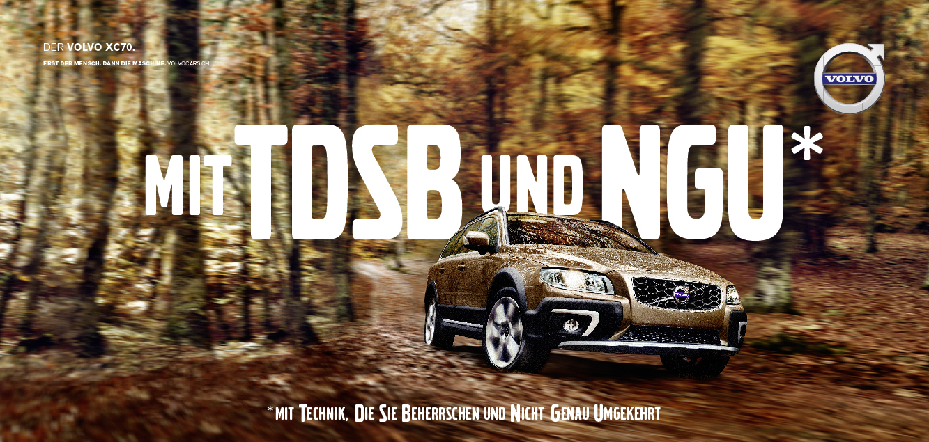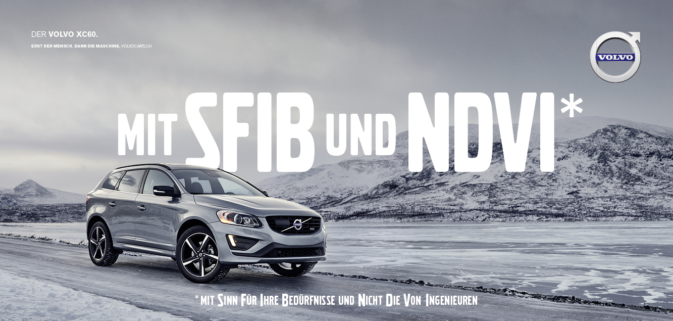 Viele Automarken sprechen gerne in Kürzeln. Vor allem, wenn sie über technische Errungenschaften ihrer Ingenieure sprechen. Bei Volvo hingegen kommt immer zuerst der Mensch und dann die Maschine. Genau darum dreht sich die neue Volvo Kampagne von Leo Burnett Schweiz. Jedes Sujet lobt in der typischen Kürzel-Form scheinbar neue Features, die sich beim Lesen des Sternchentextes jedoch als grundlegende Wünsche von Autofahrern entpuppen.
