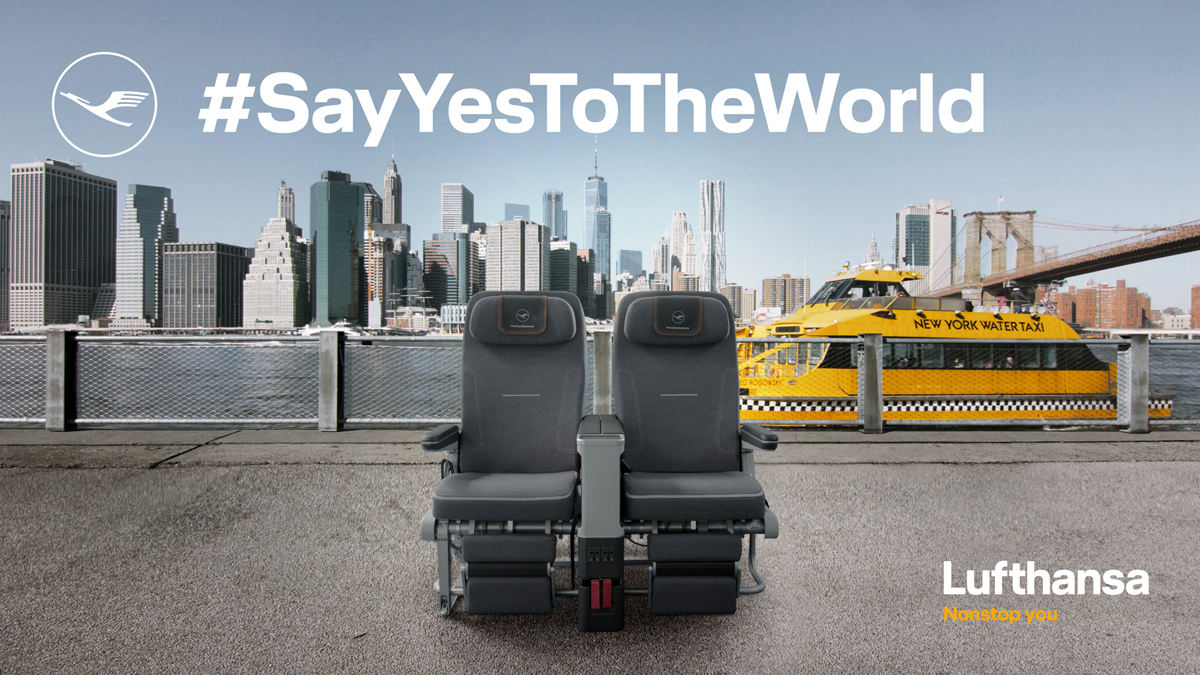 Die neue Lufthansa Kampagne #SayYesToTheWorld lädt dazu ein, „Ja“ zur Welt zu sagen und sich direkt vor Ort an aufregende Destinationen zu versetzen. Möglich wird dies durch die Augmented-Reality-Installation „Open Seats“: Die Teilnehmer nehmen auf Sitzen der Premium Economy-Klasse Platz, wo sie von Sensoren und Kameras erfasst werden. Auf einem sieben Quadratmeter großen Bildschirm finden sie sich anschließend – genau wie im TV-Spot – als Besucher in einem spektakulären Reiseziel wieder. In Indien, China oder den USA können sie in Echtzeit mit einer Mischung aus animierten 3D-Elementen, Schauspielern und realer Umgebung interagieren und so die Destination spielerisch entdecken. Möglich wird dieses Erlebnis durch eine ausgefeilte Kombination aus Skelett-Tracking und Tiefenerkennung, die die Bewegung der Teilnehmer interpretiert und entsprechende Reaktionen in der erweiterten Realität auslöst.