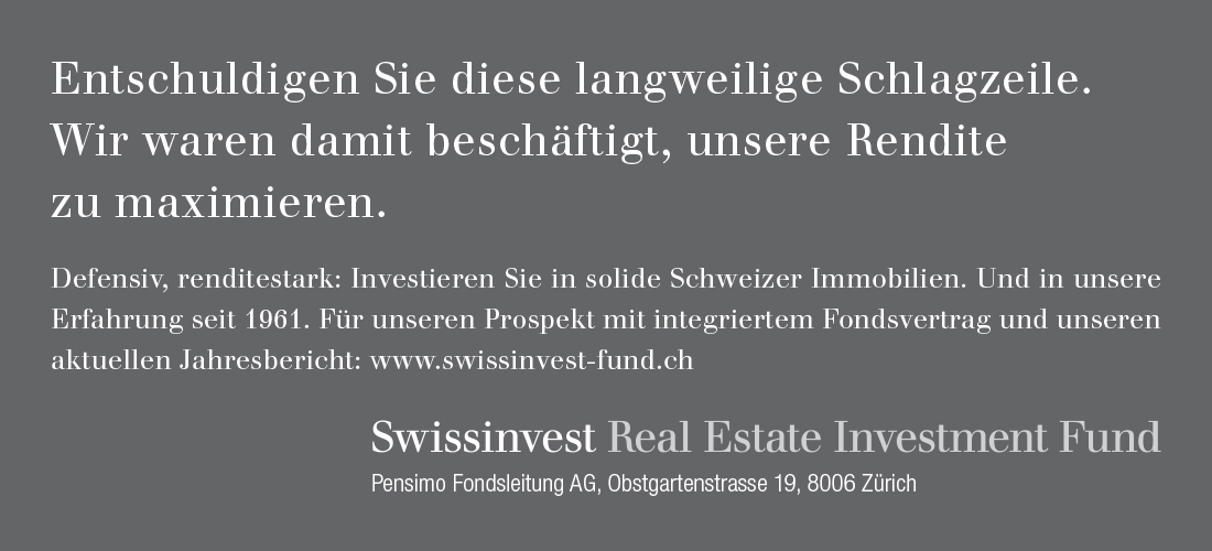 Auch 2016 beweist der Immobilienfonds Swissinvest, dass man sich Aufmerksamkeit nicht mit grossen Werbebudgets erkaufen muss. Kleinanzeigen reichen – wenn die Schlagzeilen so relevant wie prägnant sind.