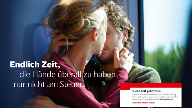 Bahnfahren ist Qualitätszeit. Im Gegensatz zum Auto und Flugzeug steht die Zeit, die man im Zug verbringt, für jeden individuell zur Verfügung, ohne dass man auf den Verkehr achten muss oder Zeit beim Check-in verbringt. Der eine strickt Mützen, der andere lernt Texte oder nutzt die Zeit zum Dösen. Diese ganz persönliche Zeitautonomie findet ihren Ausdruck im Leitgedanken der Kampagne: «Diese Zeit gehört Dir», so Peter Römmelt, Executive Creative Director bei Ogilvy Frankfurt, zur Kampagnenidee.