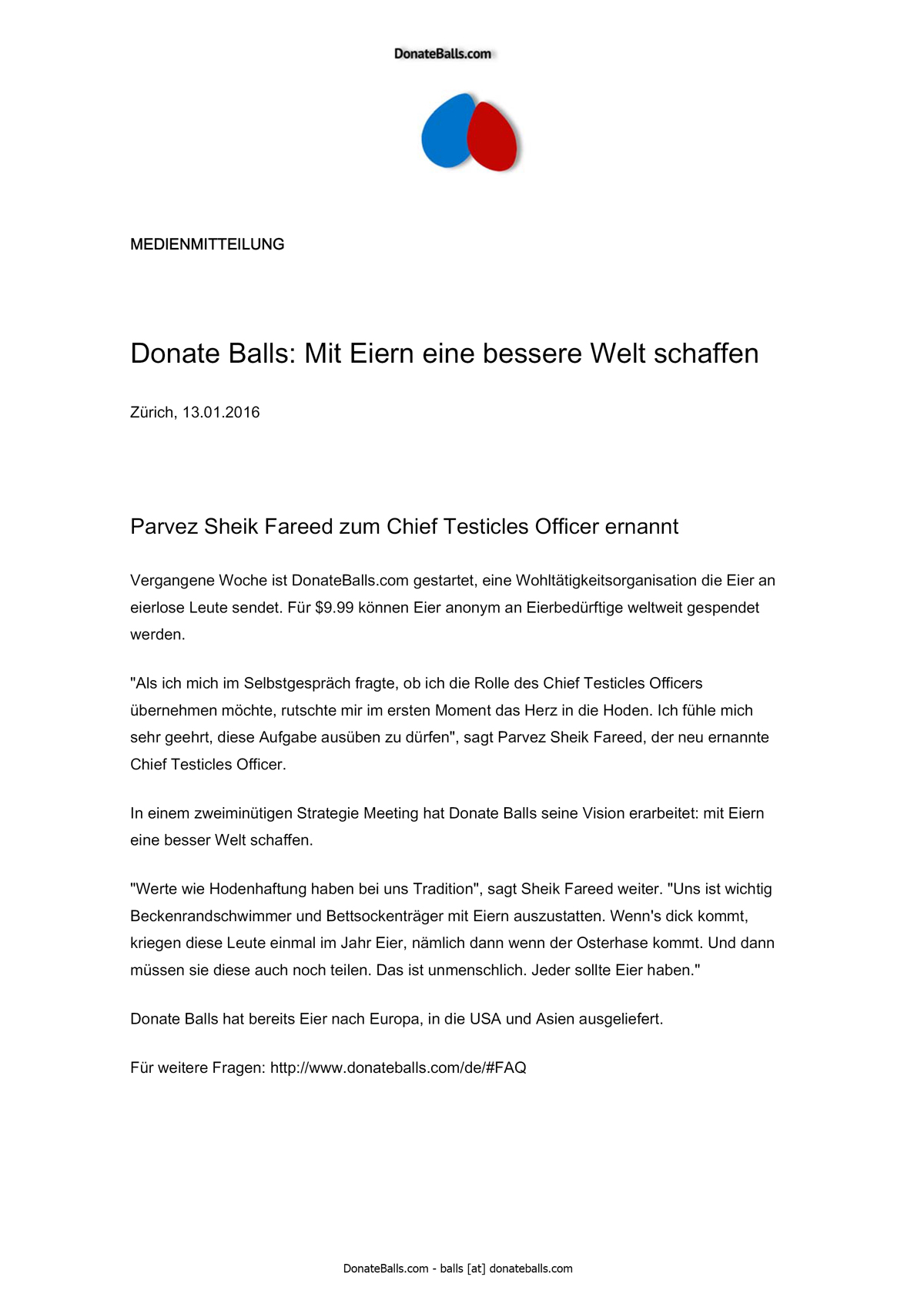 Offizielle Medienmitteilung zu DonateBalls.com: