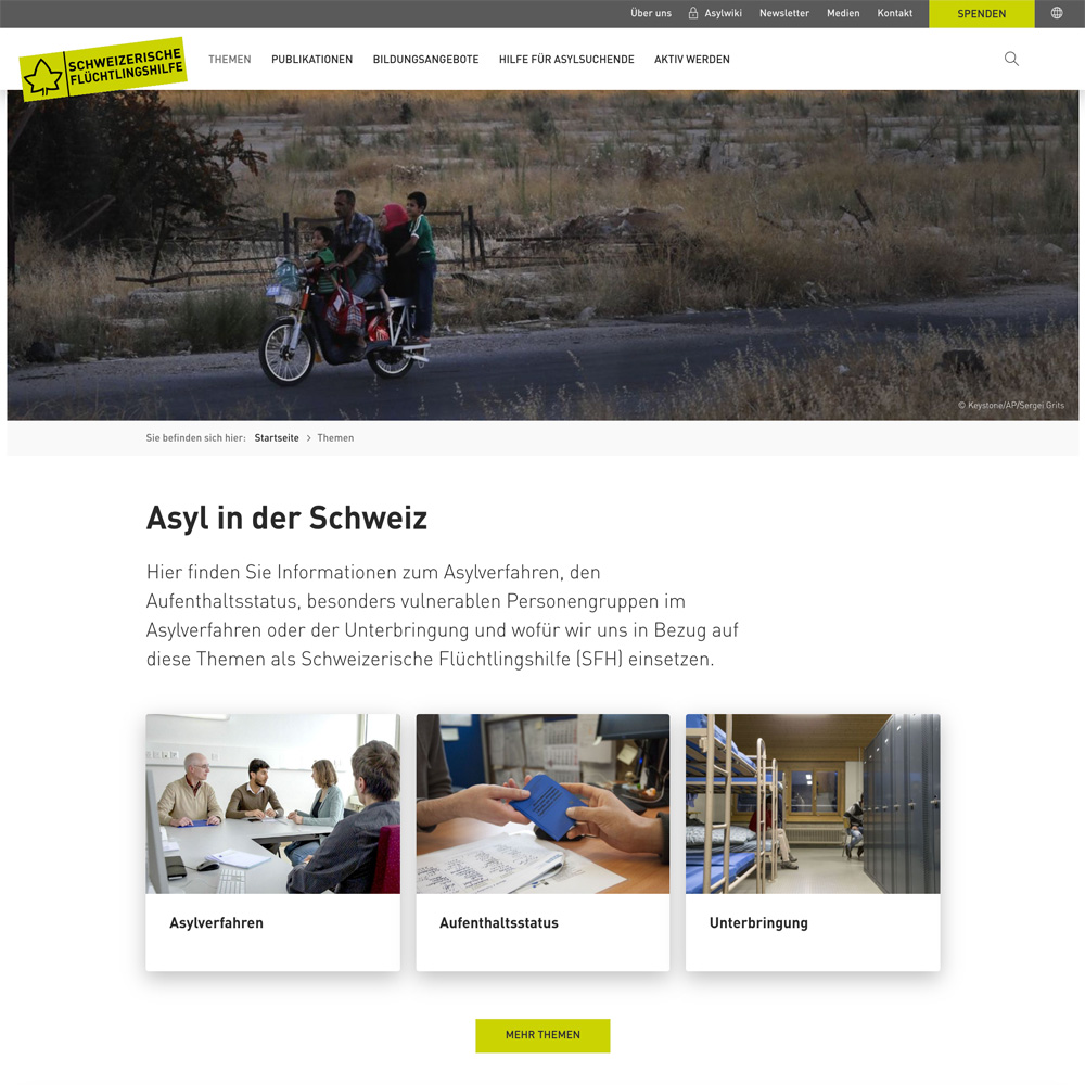 Die Besucher sollen sich dennoch rasch zurechtfinden und in kurzer Zeit diejenigen Inhalte ermitteln, wonach sie suchen. Unter diesem Motto wurde der Relaunch der SFH-Webseite konzeptioniert.