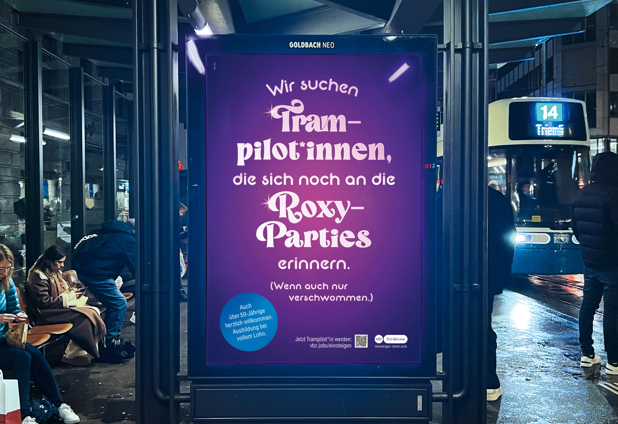 Mit der heute anrollenden Kampagne von Ruf Lanz suchen die VBZ neue Trampilot*innen und Busfahrer*innen. Sie spricht gezielt die Generation 50 plus an, die auf dem Arbeitsmarkt zu Unrecht oft links liegen gelassen wird.