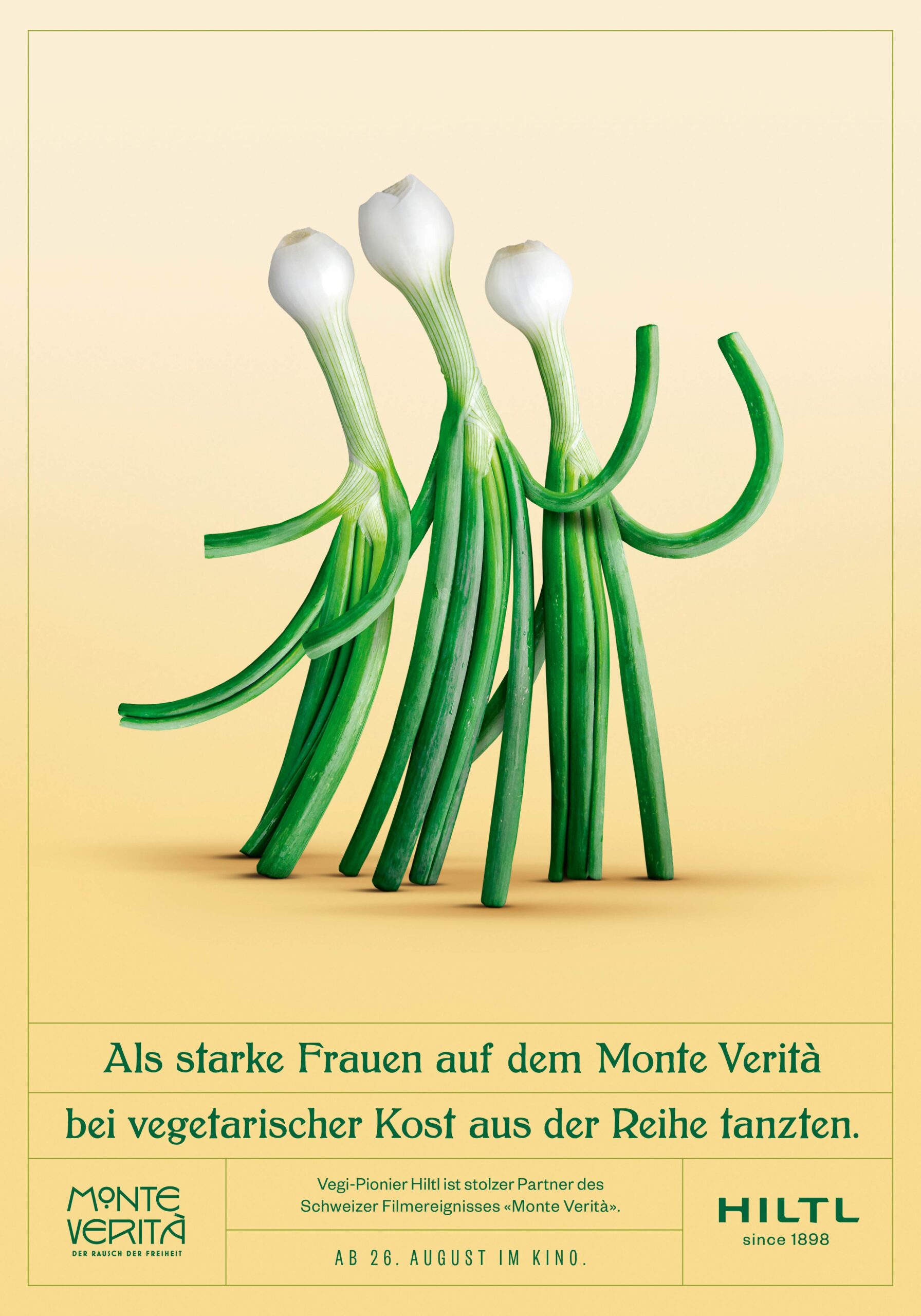 Die Geschichte des traditionsreichen Familienunternehmens Hiltl begann 1898, also nur acht Jahre vor der Filmhandlung, und weist thematisch viele Parallelen auf. Der Weg war für Hiltl in den Anfängen so steinig wie jener für die Aussteiger auf den Monte Verità. Das Lokal wurde damals als «Wurzelbunker», die Gäste als «Grasfresser» betitelt. Dass sich die ersten Reformer auf dem Berg in Ascona vegetarisch ernährten, und ein naturnahes Miteinander lebten, macht diese Kooperation zwischen DCM und Hiltl besonders passend.