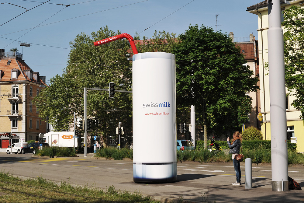 Ruf Lanz hat für die Schweizer Milchproduzenten SMP die Leuchtdrehsäulen von Clear Channel überraschend genutzt – und sie in ein grosses, sich drehendes Milchglas verwandelt. Zu sehen ist das erste Milchglas seit dem 18. Mai 2015 an der Schaffhauserstrasse in Zürich. Passenderweise direkt bei der Haltestelle Milchbuck.