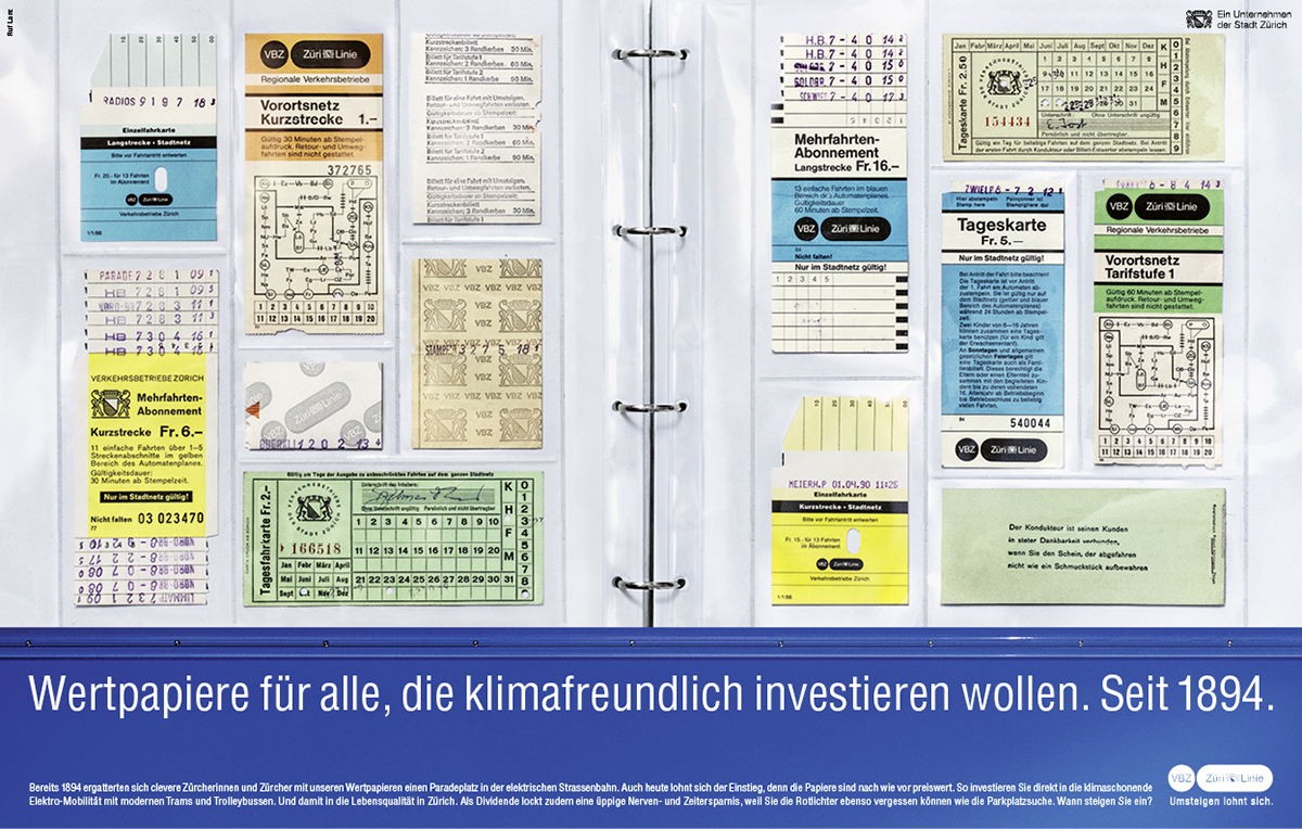 Ruf Lanz positioniert VBZ-Tickets als nachhaltige Wertpapiere.