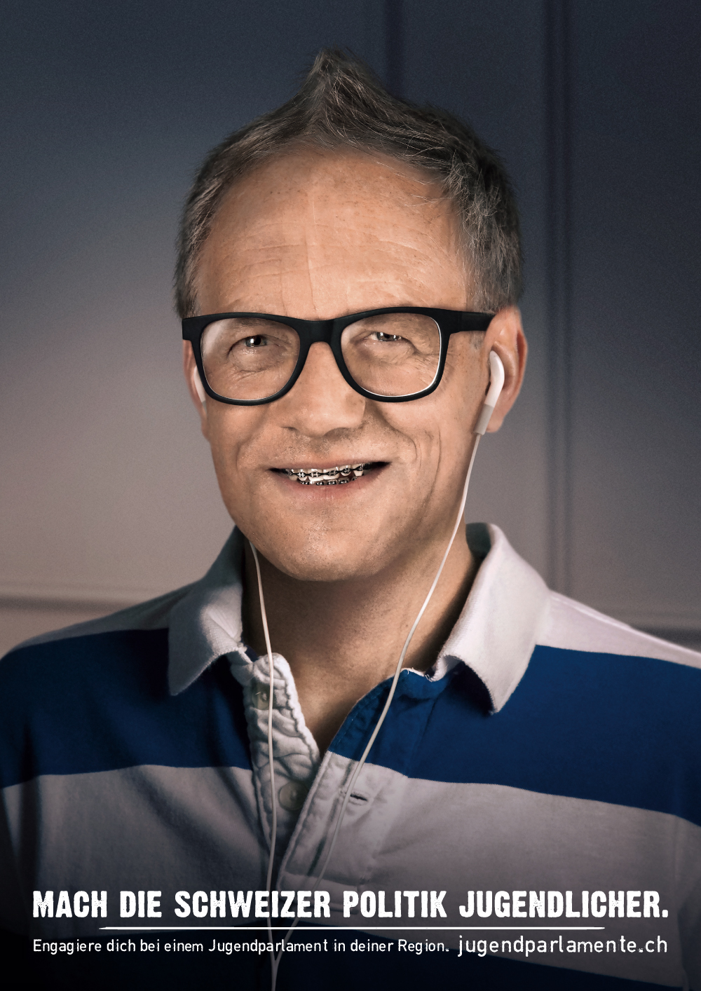Deshalb hat die Kommunikationsagentur Ruf Lanz im Auftrag des Verbandes eine freche Kampagne kreiert. Die Schweizer Bundesrätinnen und Bundesräte haben im Durchschnitt 55 Jahre auf dem Buckel. Das ist viel zu alt, fanden die kreativen von Ruf Lanz und haben die Sieben einer radikalen Verjüngungskur unterzogen. Alt-Bundesrat Christoph Blocher widmeten sie ebenfalls ein Sujet, weil er die Politik nach wie vor mitprägt. Der auffordernde Slogan dazu lautet: «mach die Schweizer Politik jugendlicher.»