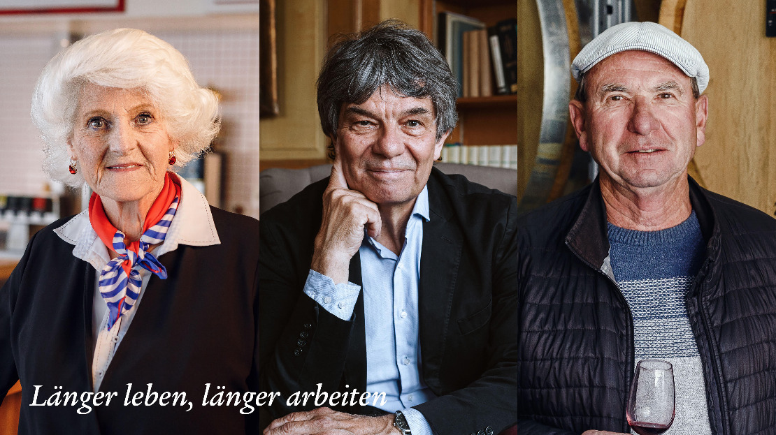 In kurzen Filmen, die auf Social Media ausgespielt werden, erzählen drei ProtagonistInnen, weshalb sie auch nach 64/65 weitgehend selbstbestimmt noch arbeiten. Ergänzend wurden mit den Portraitierten auch Interviews für den «Life Stories»-Blog von Swiss Life produziert. Zu Wort kommt etwa der bekannte Psychologe Allan Guggenbühl (69), der irgendwie einfach nicht anders kann, als zu arbeiten, weil es ihn halt interessiert und damit recht typisch ist für seine Berufsgattung – Akademiker gehören mit zu denjenigen, die am häufigsten länger arbeiten. Für die Berufsgruppe der Landwirte kommt Jürg Biber (68) zu Wort, ein leidenschaftlicher Weinbauer, der noch keine Nachfolge gefunden hat für seinen Betrieb im Walliser Salgesch und sich eigentlich freuen würde, auch mal mit seiner Frau auf Reisen zu gehen. Und dann ist da noch Maria Huber, die mit achtzig noch genauso energiegeladen und selbstbestimmt im Einsatz ist bei der Schweizer Fastfoodkette Silberkugel wie vor vierzig Jahren und immer noch nicht genug hat vom Trubel der Arbeitswelt – allerdings in reduziertem Pensum.