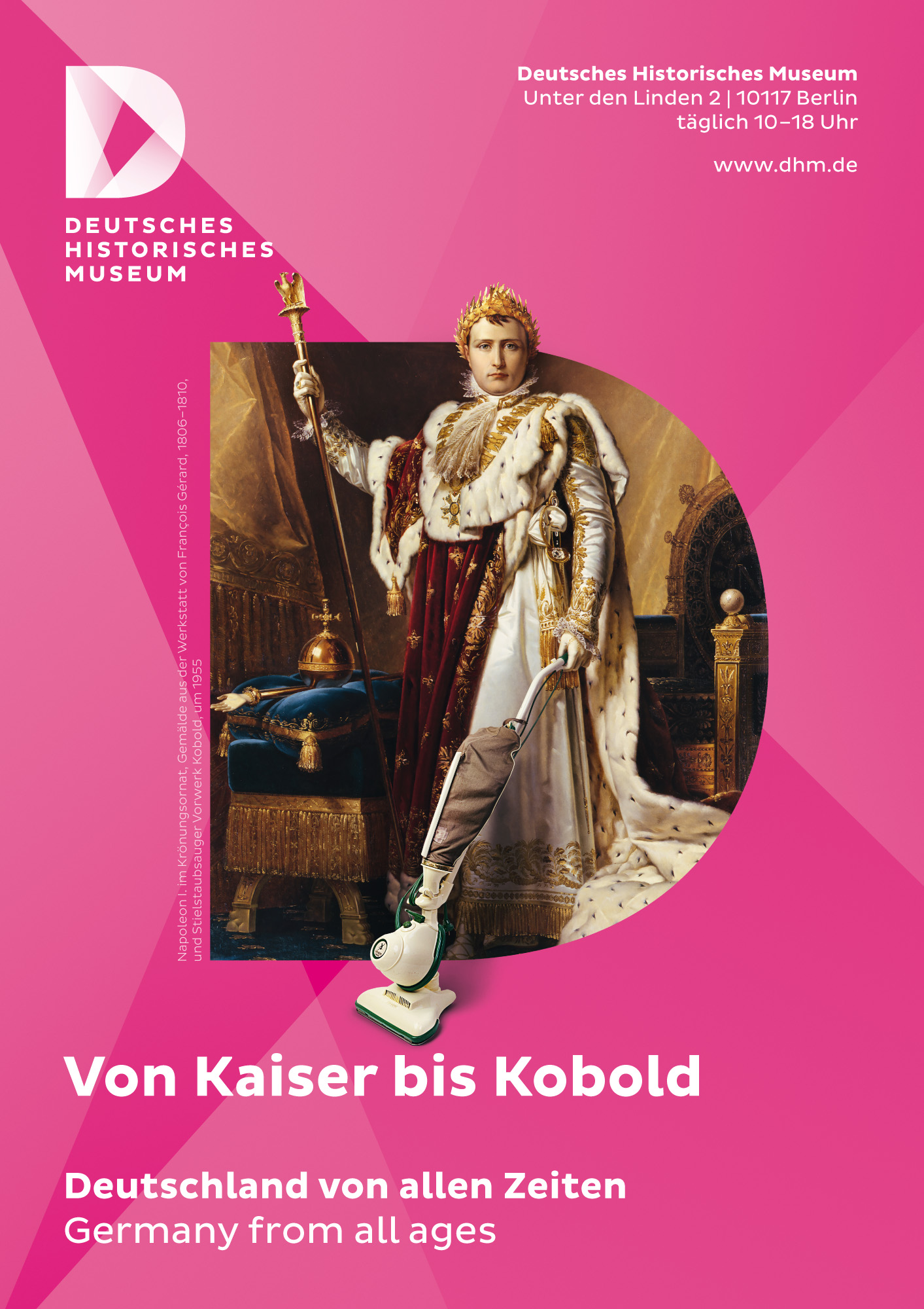 Die geplante Kampagne beleuchtet die Einzigartigkeit der Dauerausstellung, die einen Überblick über 1.500 Jahre deutscher Geschichte im europäischen Kontext gibt. Ab Anfang Juni werden die Printmotive der Kampagne als CLPS, Bauzaunplakate und auf Bike-Taxis im Stadtbild Berlins sichtbar sein. Unter dem Motto „Von…bis…“ kombinieren die Motive verschiedene Epochen und zeigen die Bandbreite des Museums. So zeigt das Motiv „Von Kaiser bis Kobold“ einen staubsaugenden Napoleon. Ein Imagetrailer greift diesen Gedanken auf und bringt das Angebot des Museums auf die große Leinwand.