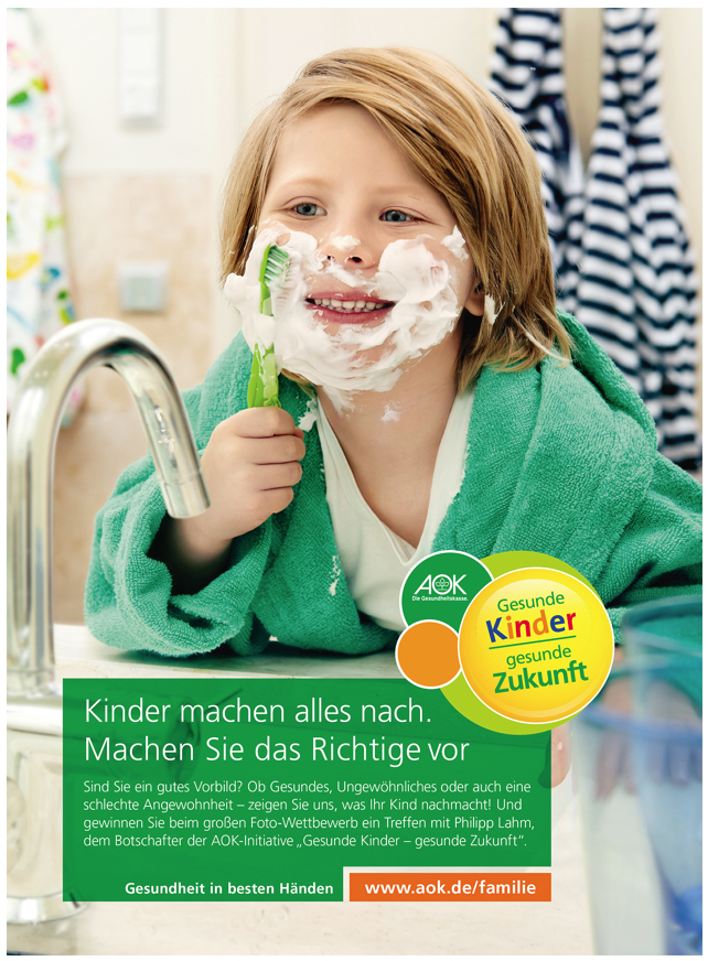 Die vernetzte AOK-Kampagne, die am 4. Mai 2015 gestartet ist und bis Ende Juli läuft, zeigt Philipp Lahm als Botschafter der AOK-Initiative „Gesunde Kinder – gesunde Zukunft“ und ruft zur Teilnahme an einem Fotowettbewerb auf, bei dem Eltern ihr Kind bei etwas fotografieren sollen, das es von ihnen abgeschaut hat. Der Preis: ein ganzer Tag im August mit dem Fußballstar. Philipp Lahm engagiert sich für die Kampagne in seiner Funktion als Vorstand der Philipp Lahm Stiftung.