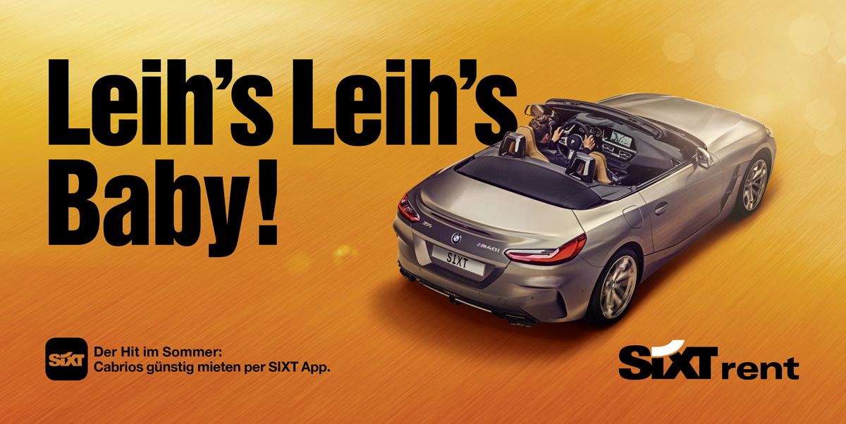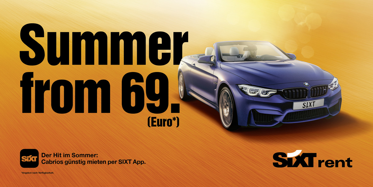 „Vamos a Verleiher“, „Summer from 69 (Euro)“, „Leih’s Leih’s Baby“ – was wäre ein Sommer ohne den passenden Song? Und während in den Radios der große Sommerhit 2019 noch auf sich warten lässt, bringt SIXT mit seinen neuen Premium-Mietcabrios ab sofort einen Hit nach dem anderen auf die Strasse. Diese bewirbt SIXT ab Ende Juni mit Motivzeilen, die unverkennbar an berühmte Sommerhits angelehnt sind.
