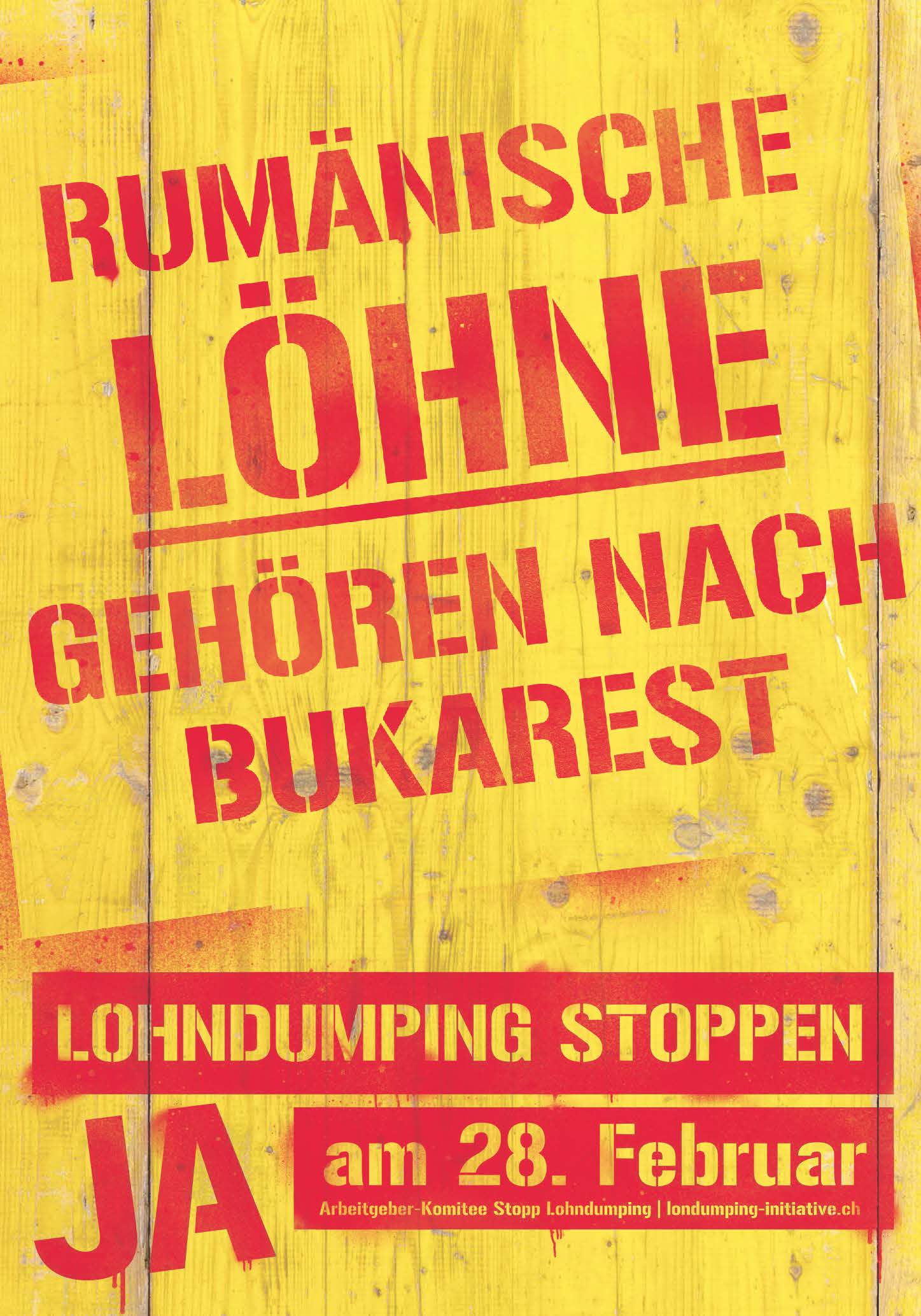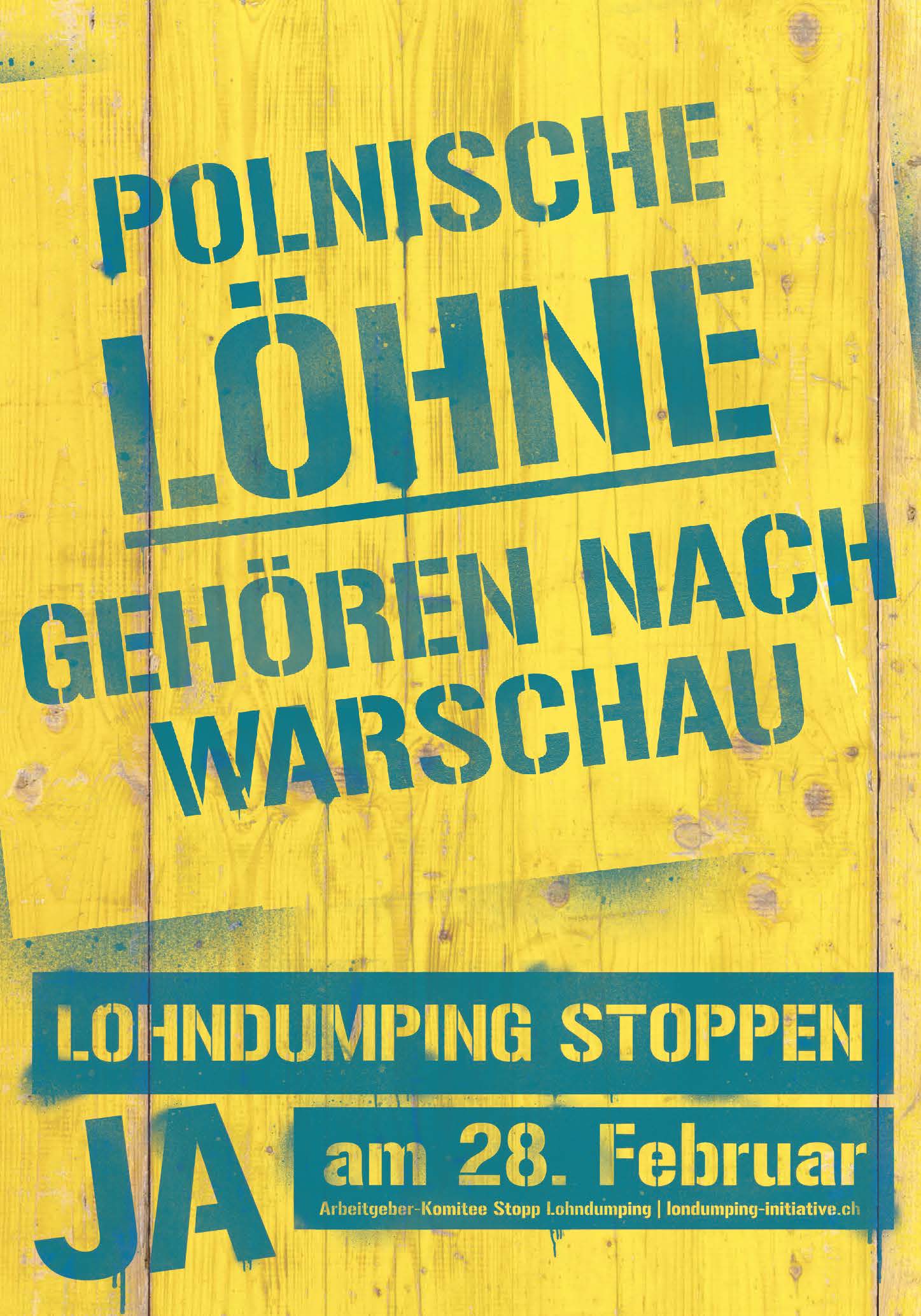Für ein JA an der Urne macht sich das Arbeitgeber-Komitee „Stopp Lohndumping“ stark. Das Komitee hat darum die Werbeagentur Spinas Civil Voices mit der Kreation einer Plakatkampagne betraut. Die 3 verschiedenen Sujets, die klipp und klar kommunizieren, was Sache ist, werden im Vorfeld der Abstimmung im ganzen Kanton zu sehen sein.