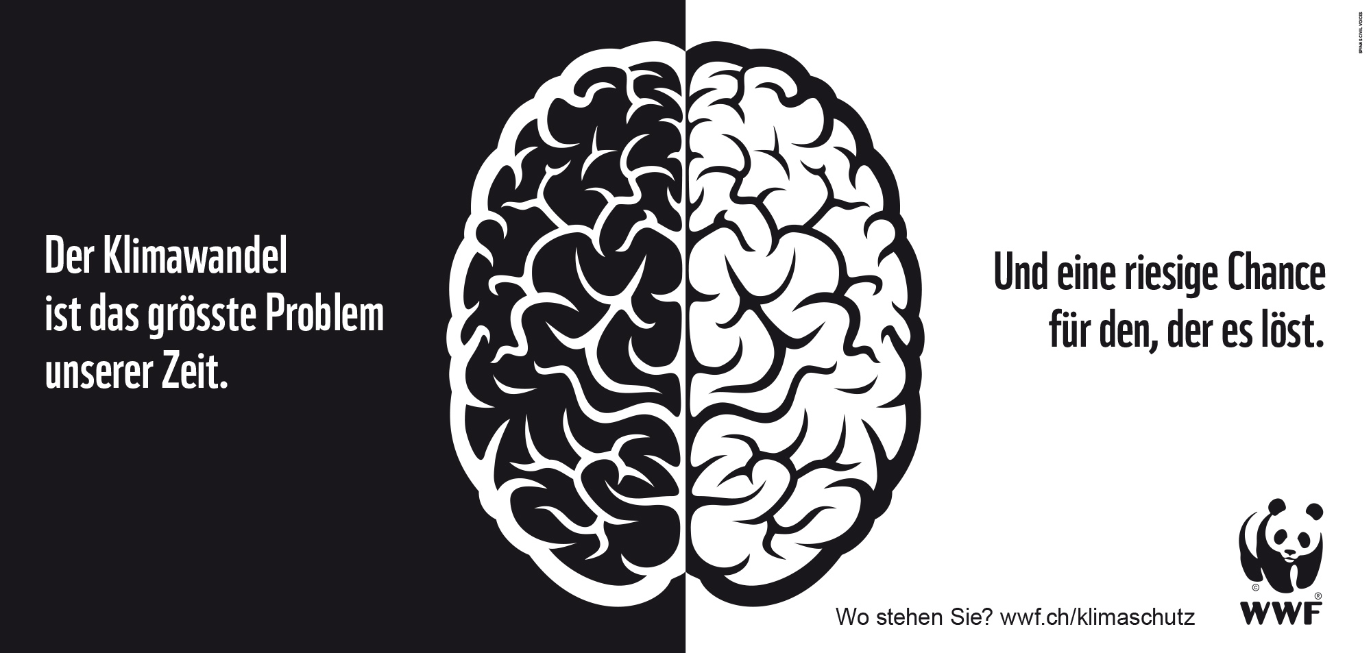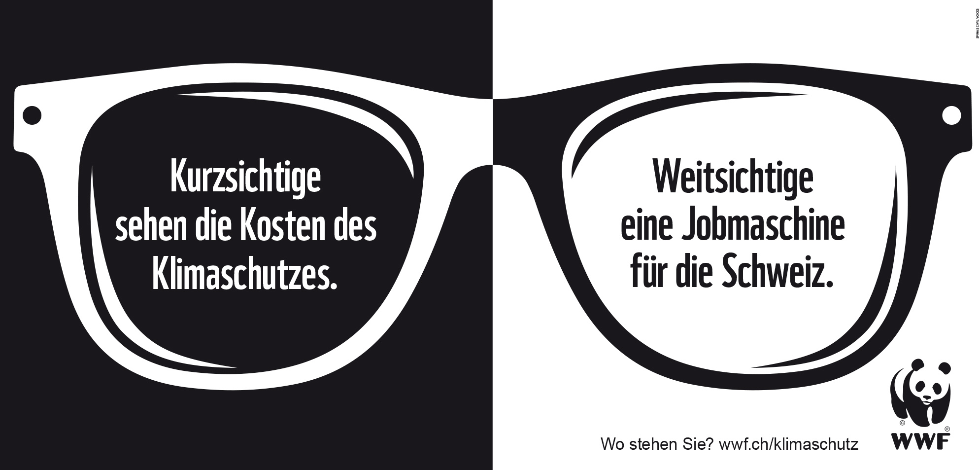 Klimaschutz ist kein Problem, sondern eine Chance für die Schweiz. Dieser Meinung sind laut der aktuellen Univox-Studie die Mehrheit der Schweizerinnen und Schweizer. In der Politik ist von dieser Überzeugung des Volkes vielerorts nicht viel zu spüren. Um das zu ändern, sorgt der WWF Schweiz dieser Tage mit einem ganzen Bündel überraschender Argumente für frischen und nachhaltigen Wind in der Klimaschutz-Debatte. Inszeniert werden die Argumente in einer einfachen, aber kraftvollen Plakat- und Online-Kampagne, in der Argument und Gegenargument schwarz auf weiss gegenübergestellt werden.