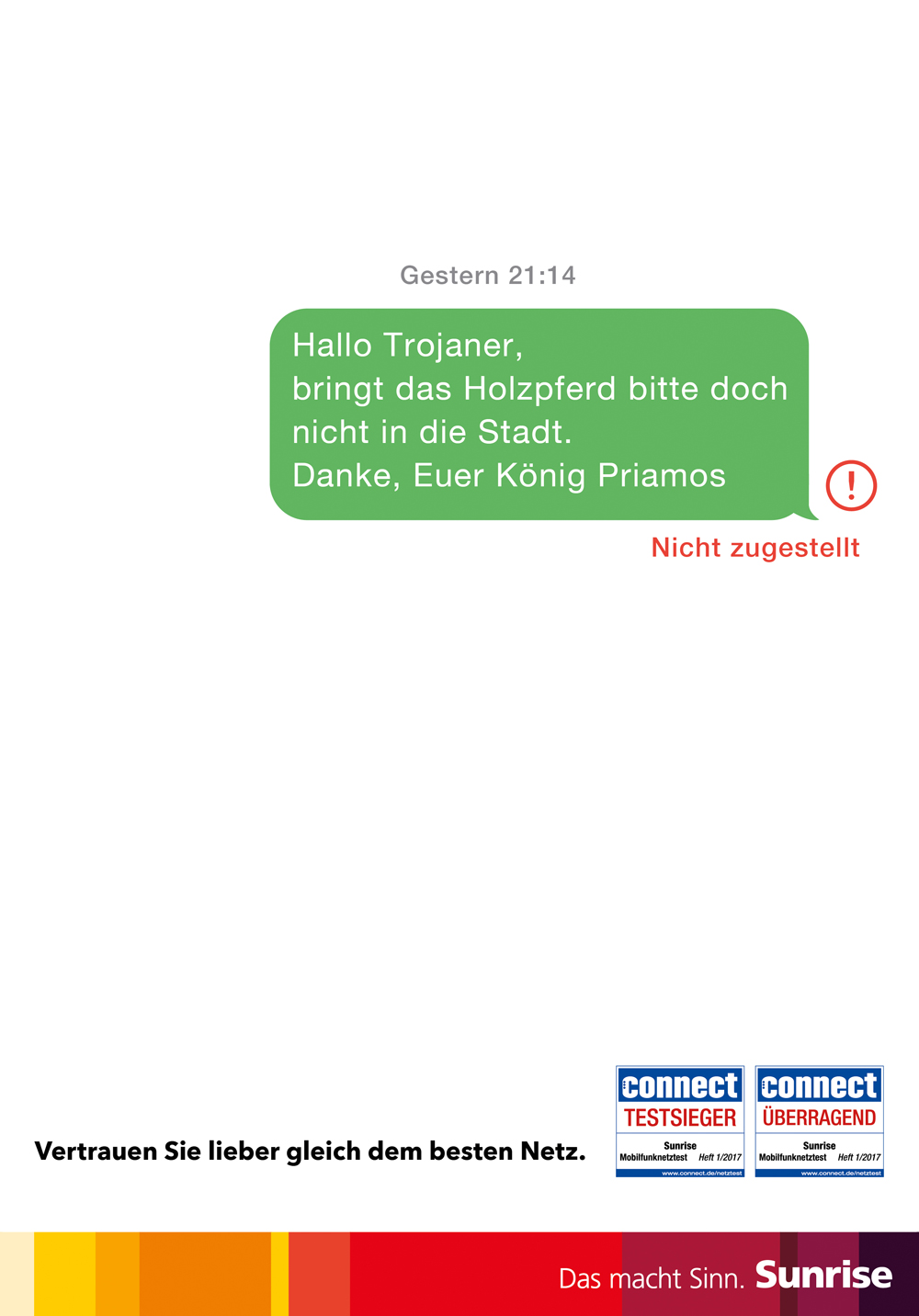 Ob Romeo & Julia, die Eroberung Trojas oder Schneewittchen. Mit dem besten Netz wären lebenswichtige Botschaften auch garantiert angekommen und hätten den Betroffenen so eine Menge Ärger erspart.