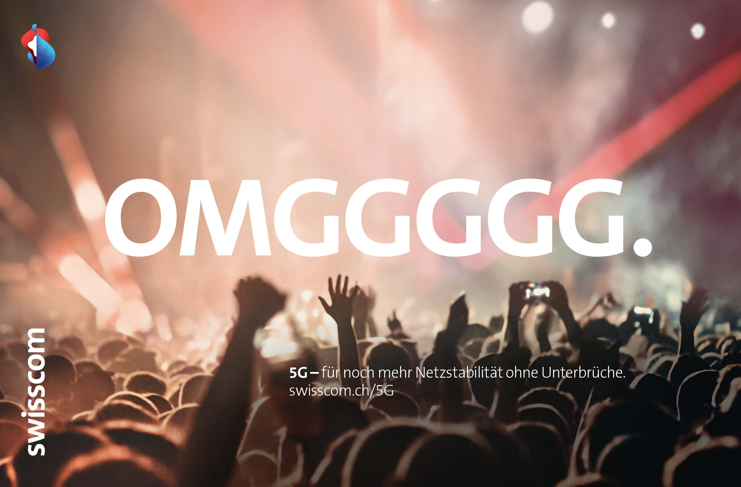 «Mit einem schnellen und plakativen Auftritt wollen wir die Zielgruppe auf das komplexe Thema sensibilisieren», erklärt Executive Creative Director Raul Serrat «und mit passenden Geschichten den Nutzen greifbar machen.» So entstanden die merkfähigen Headlines mit fünf «G»s wie «GAMINGGGGG», «OMGGGGG» oder «ERTRAGGGGG», welche in Kombination mit nutzenspezifischen Bildern das Thema emotionalisieren. Zu jedem Werbesujet wurde eine passende Story für die Swisscom-eigenen Kanäle erarbeitet.