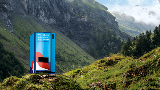 Am vergangenen Wochenende trauten die Wanderer im beliebten Weisstannental im Kanton St. Gallen ihren Augen nicht: mitten in den Bergen tauchte plötzlich ein Automat auf. Jeder konnte sich dort per Smartphone ein kühles Gratis-Getränk holen. Jeder, der Internet-Empfang hat. Der Haken daran: genau an diesem Ort hat nur Swisscom Netz – alle anderen Anbieter leider nicht.