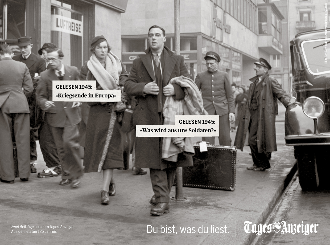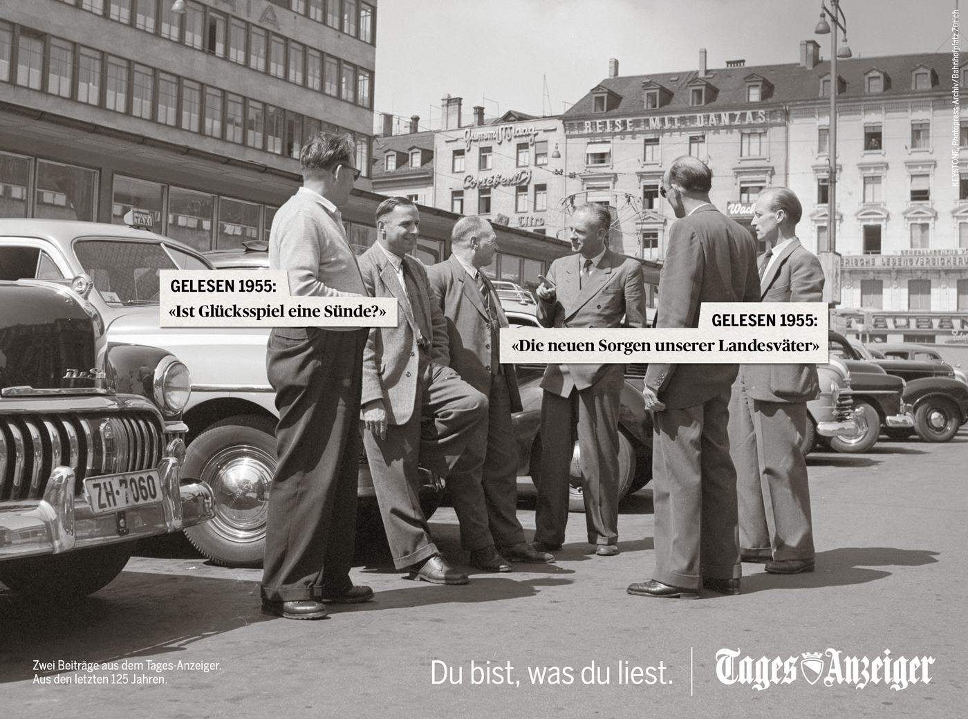 Die von Wirz entwickelte Jubiläumskampagne zum 125-jährigen Bestehen des «Tages-Anzeigers» ordnet der Stadtbevölkerung Schlagzeilen zu, welche die Welt oder zumindest Zürich verändert haben. Getreu dem Mechanismus der bewährten «Du bist, was du liest»-Kampagne werden dabei Momentaufnahmen aus dem Stadtleben mit echten «Tagi»-Schlagzeilen kombiniert.