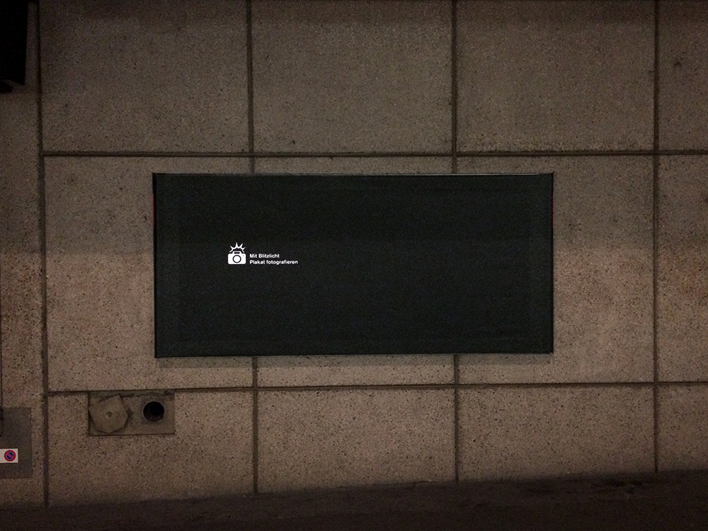 Die ausgeklügelte Technik verblüfft. Die Botschaft des schwarzen Plakats kommt erst durch das Abfotografieren mit Blitzlicht zum Vorschein und so direkt auf das Mobile. Das entstandene Foto ist gleichzeitig ein Gutschein, der bei McDonald’s eingelöst werden kann.