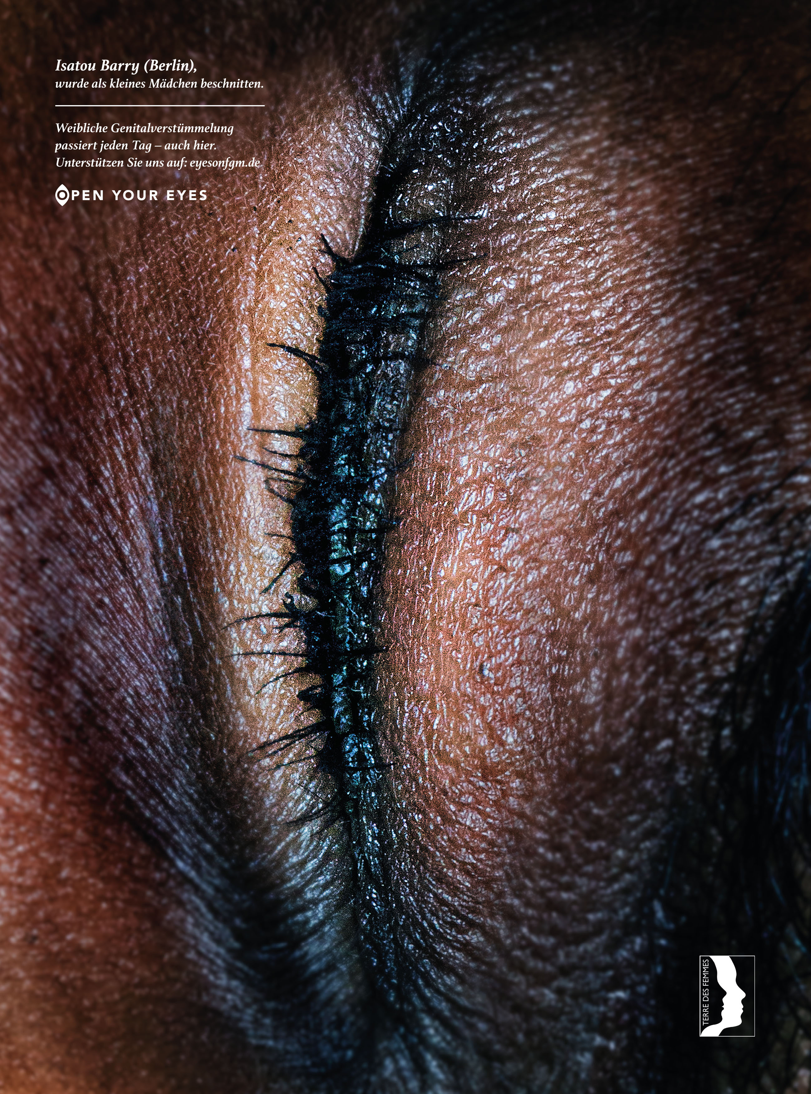 Es passiert jeden Tag überall auf der Welt – sogar in Deutschland: Weibliche Genitalverstümmelung (FGM – Female Genital Mutilation). Weltweit sind über 200 Millionen Frauen von dieser grausamen „Tradition“ betroffen, 48.000 auch hier in der Bundesrepublik. Trotzdem ist das Problem für die meisten Menschen nicht sichtbar. Mit der von GREY konzipierten Kampagne „Open your eyes“ will TERRE DES FEMMES dies nun pünktlich zum internationalen Tags der genitalen Selbstbestimmung am 07. Mai ändern und der breiten Öffentlichkeit die Augen öffnen.