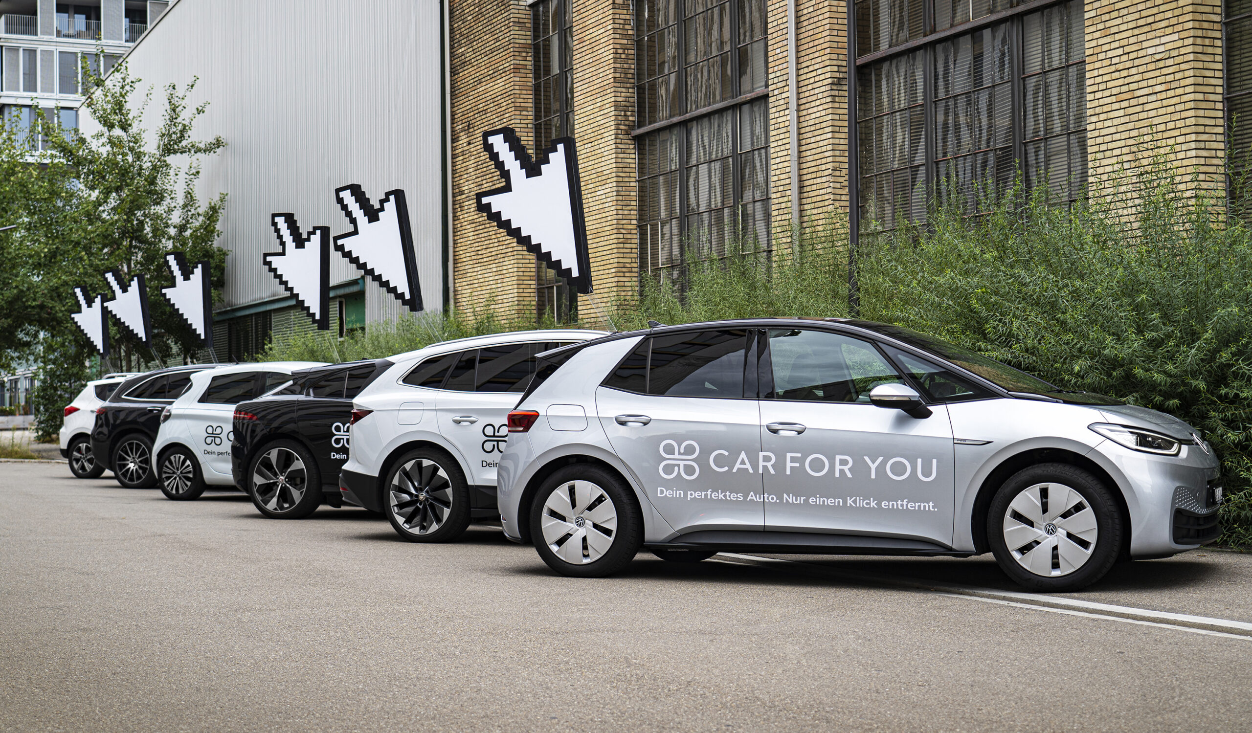 E-Autos unterschiedlicher Marken wurden zu Cursor Cars umgebaut. Dazu wurde ihnen ein überdimensionaler Mauszeiger am Heck befestigt und das passende Kampagnen-Motto direkt aufs Auto geschrieben: «Dein perfektes Auto. Nur einen Klick entfernt.»