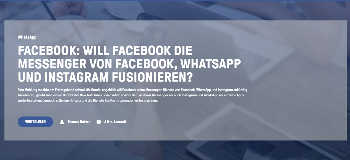 Mein Blog thomashutter.com gilt im deutschsprachigen Raum als eine der wichtigsten Quellen rund um Facebook Marketing. D.h. ich und mein Team versuchen den Blog möglichst häufig mit News und Infos im Umfeld von Facebook und Instagram, manchmal auch mit anderen Themen wie LinkedIn oder generell Social Media auf dem neuesten Stand zu halten. Zusätzlich veröffentlichen wir auch regelmässig ausführlichere Beiträge, die ein einzelnes Thema technisch oder theoretisch deutlich tiefer behandeln. Unabhängig von der eigentlichen News versuchen wir mit Hilfe eines Fazits unsere Meinung zum Thema mit einer ersten Einschätzung wiederzugeben. Wir veröffentlichen fast täglich einen Beitrag im Blog, je nach News- und Arbeitslage kann dies allerdings variieren.