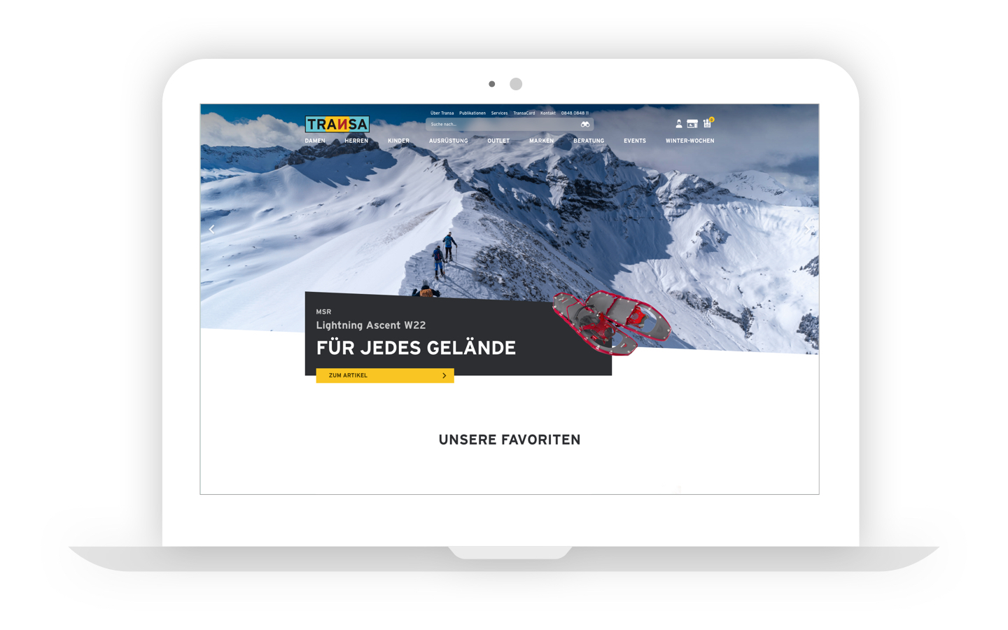 Auf transa.ch steht nicht der reine Abverkauf im Fokus, sondern das Einlösen der Value Proposition der Marke. Charakteristisches Design, eine explorative Architektur, authentisches Storytelling und produktrelevanter Content gewährleisten das gewünschte Einkaufserlebnis. Das Herzstück bilden echte Erfahrungen und vertieftes Know-how von Mitarbeitenden – in der Regel selbst echte Outdoor-Freaks.