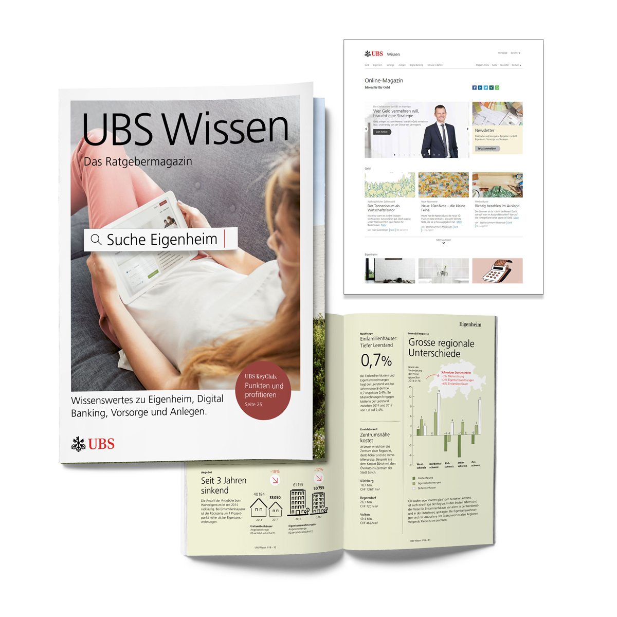 Bereits im Mai 2018 lancierte UBS die neue Ratgeber-Plattform UBS Wissen sowie die auf junge Bankkunden ausgerichtete UBS Young-Hub. Die neuen Inhaltsgefässe fokussieren auf konkrete Fragestellungen zu Finanzthemen und Lebenssituationen von Personal Banking Kunden. UBS Experten geben anwendbares Wissen in verständlicher Form an die Leserschaft weiter. Die Inhalte werden in adäquaten und auf die verschiedenen User-Gruppen angepassten Formaten umgesetzt, unter anderem auch als neu-gestaltete Print-Publikationen. So überzeugt beispielsweise das UBS Young-Magazin mit auf dem Smartphone konsumierbaren Augmented Reality-Inhalten.