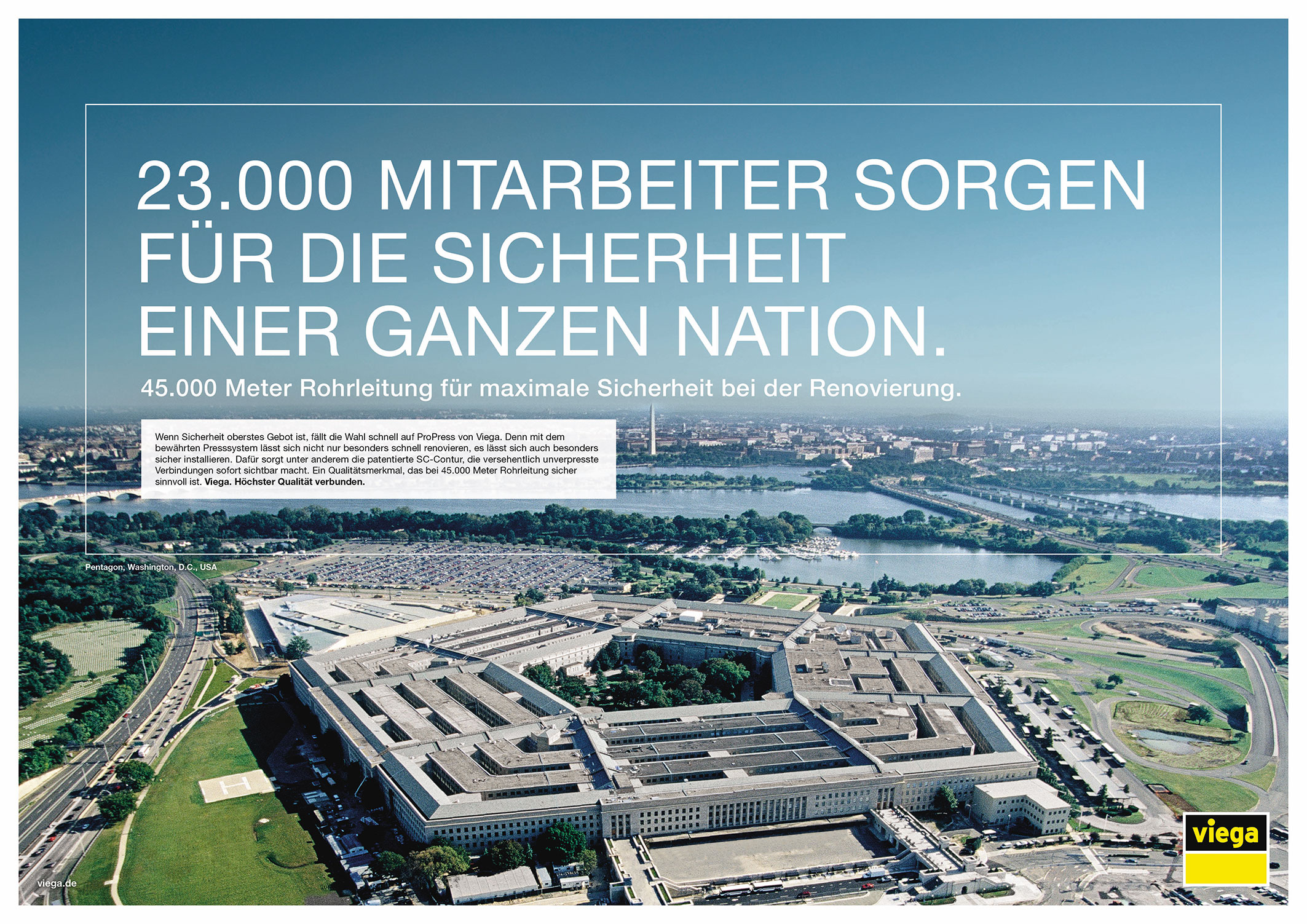 Beeindruckende nationale sowie internationale Referenzen, wie zum Beispiel die Allianz Arena in München, das Pentagon in Washington DC oder die Freiheitsstatue in New York, sind Mittelpunkt der neuen Kampagne und stellen den hohen Anspruch an die Produkte aus dem Hause Viega unter Beweis. Denn nur wer „Höchster Qualität verbunden“ ist, kommt auch dort zum Einsatz wo keine Kompromisse in Sachen Innovation, Qualität, Service und Kundennähe gemacht werden.