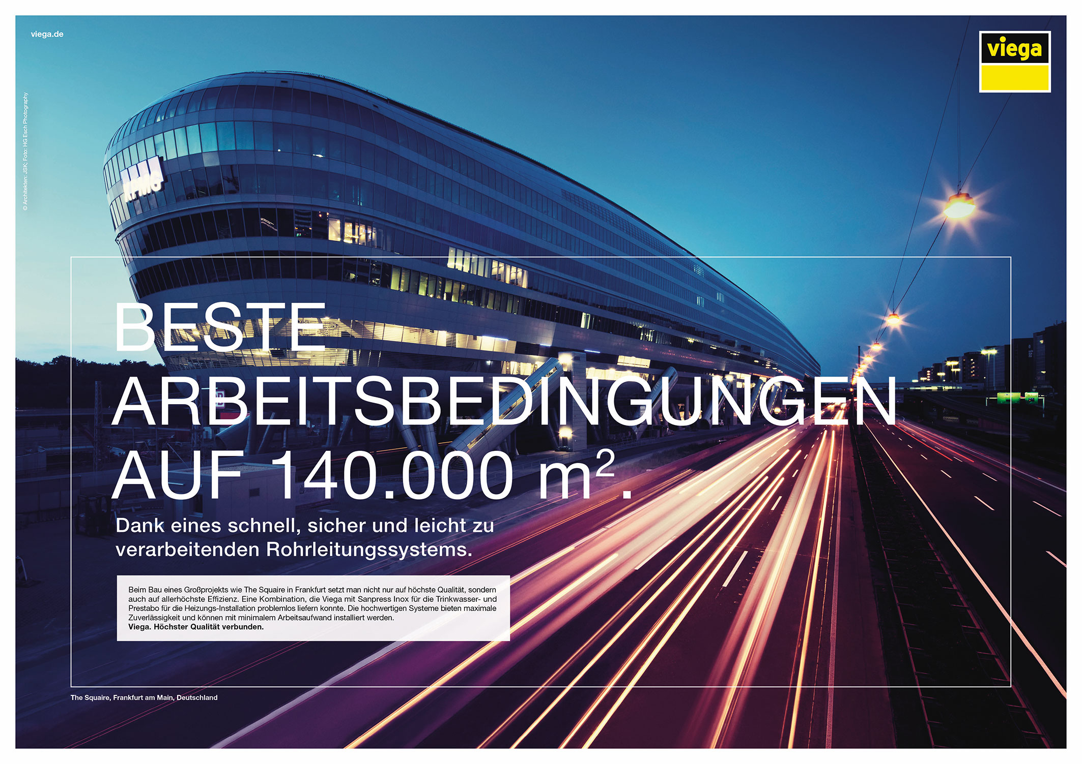 Große Bilder schaffen Aufmerksamkeit, pointierte Headlines einen direkten inhaltlichen Bezug zu Viega. Neben den Referenzmotiven bringen Kompetenzmotive zu den Themen Trinkwasser, Brandschutz, Design und Logistik zentrale Viega-Themen auf den Punkt. „Eine Imagekampagne für einen Hidden Champion wie Viega zu entwickeln ist eine ganz besondere Aufgabe. Für die Agentur, wie für den Kunden selbst“, so Kai Röffen, Geschäftsführer, thjnk Düsseldorf. Vorausgegangen war ein gemeinsamer Strategie und Marktforschungsprozess, in dem das neue Markenleitbild und die Kommunikations-Strategie entwickelt wurden.