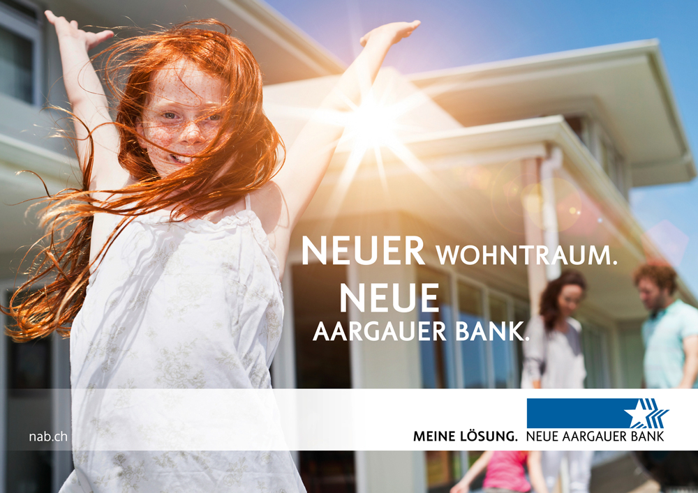 Entsprechend dem Konzept zeigen die visuellen Umsetzungen verschiedene Situationen aus dem Leben von Kundinnen und Kunden, zu deren Wohlgefühl nicht zuletzt die NEUE AARGAUER BANK mit einer individuellen Lösung beigetragen hat. In jedem Bild leuchtet denn auch ein Stern als lebensbejahendes Wiedererkennungs-Merkmal. Gestützt werden die emotionalen Bilder mit dem Headline-Duktus, der die Neue Situation gepaart mit der NAB in Szene setzt. Das konsequent eingesetzte «Neue …» heisst, für jedes neue Bedürfnis eine neue persönliche Lösung zu finden. Durch den verbalen Bezug zur NAB in jedem Werbemittel stützt die Kampagne immer auch die Marke und ist dadurch einzigartig.